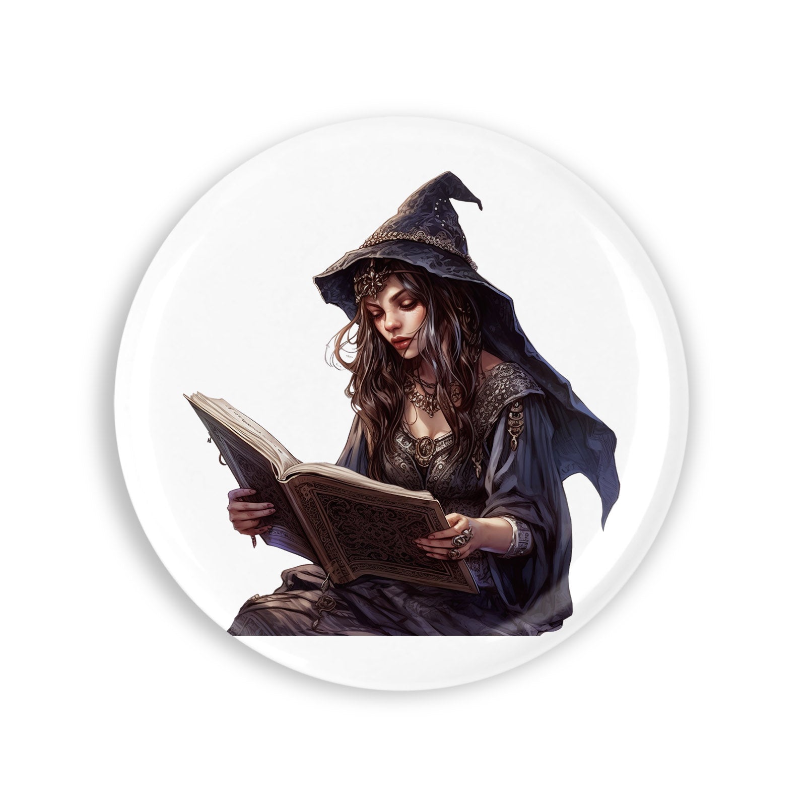 Set 4 insigne, Vrajitoare si carte magica, NO6468, Metal, 44 mm, Multicolor