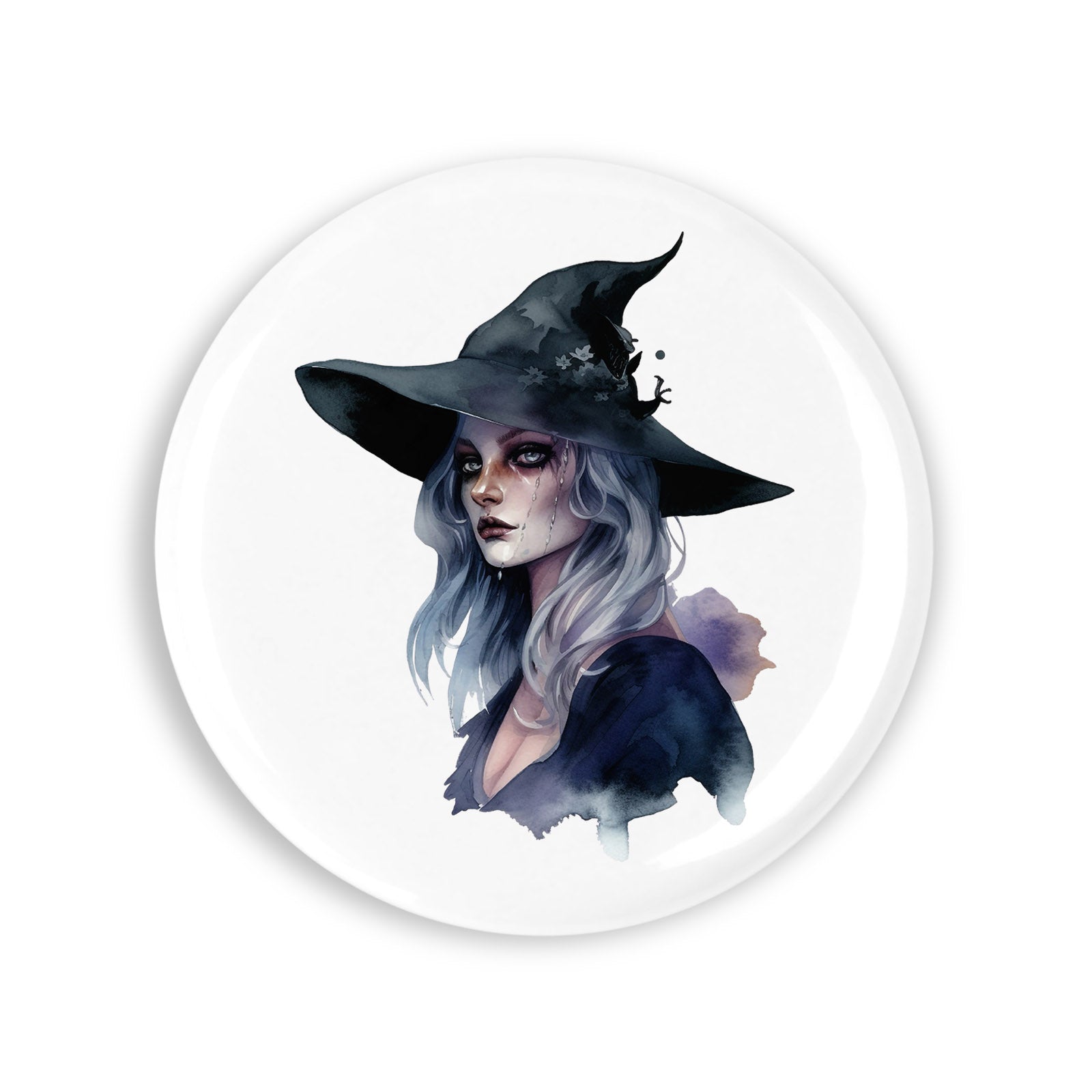 Set 4 insigne, Vrajitoarea cu flori la palarie, NO5163, Metal, 44 mm, Multicolor
