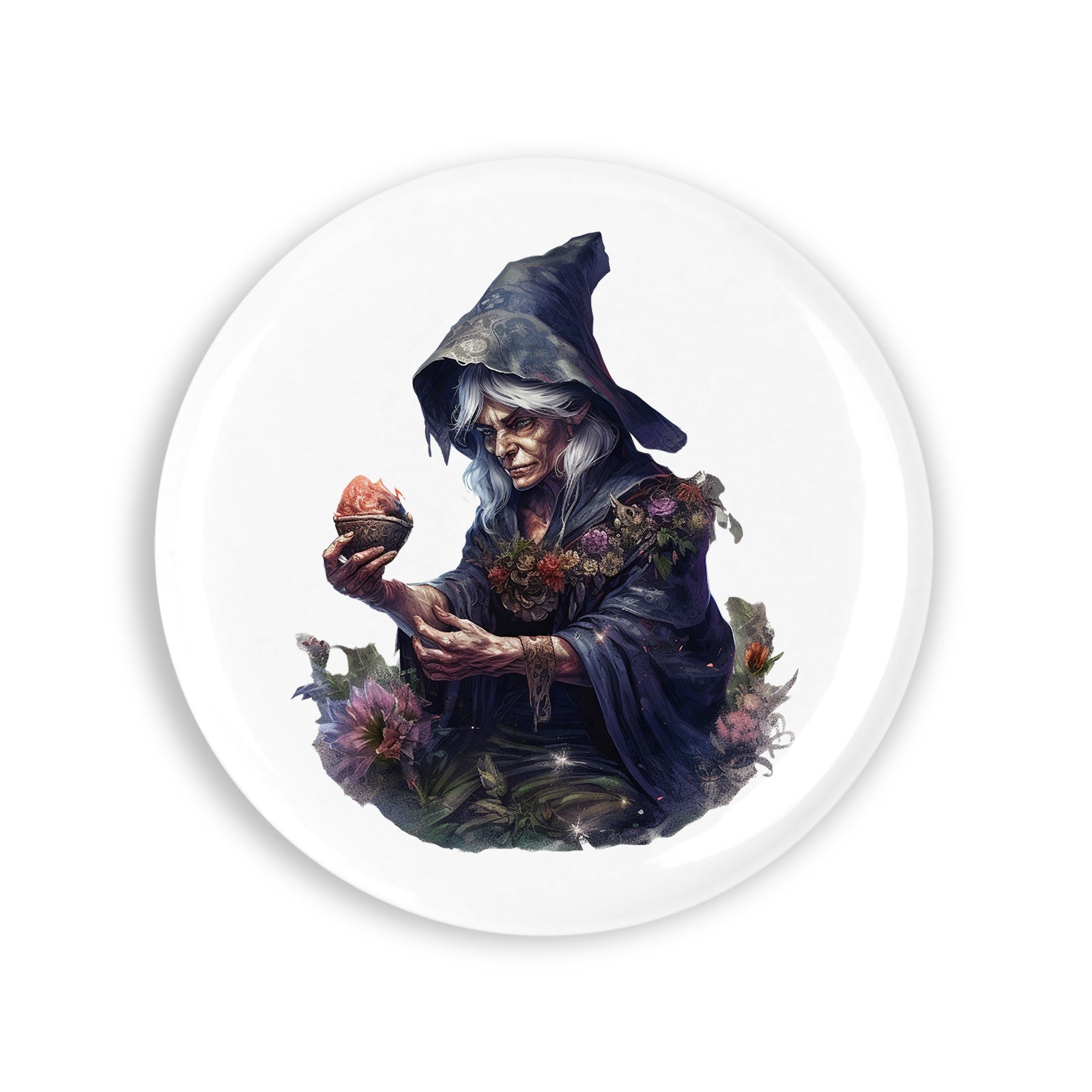Set 4 insigne, Vrajitoarea cu ghirlanda de flori, NO850, Metal, 44 mm, Multicolor