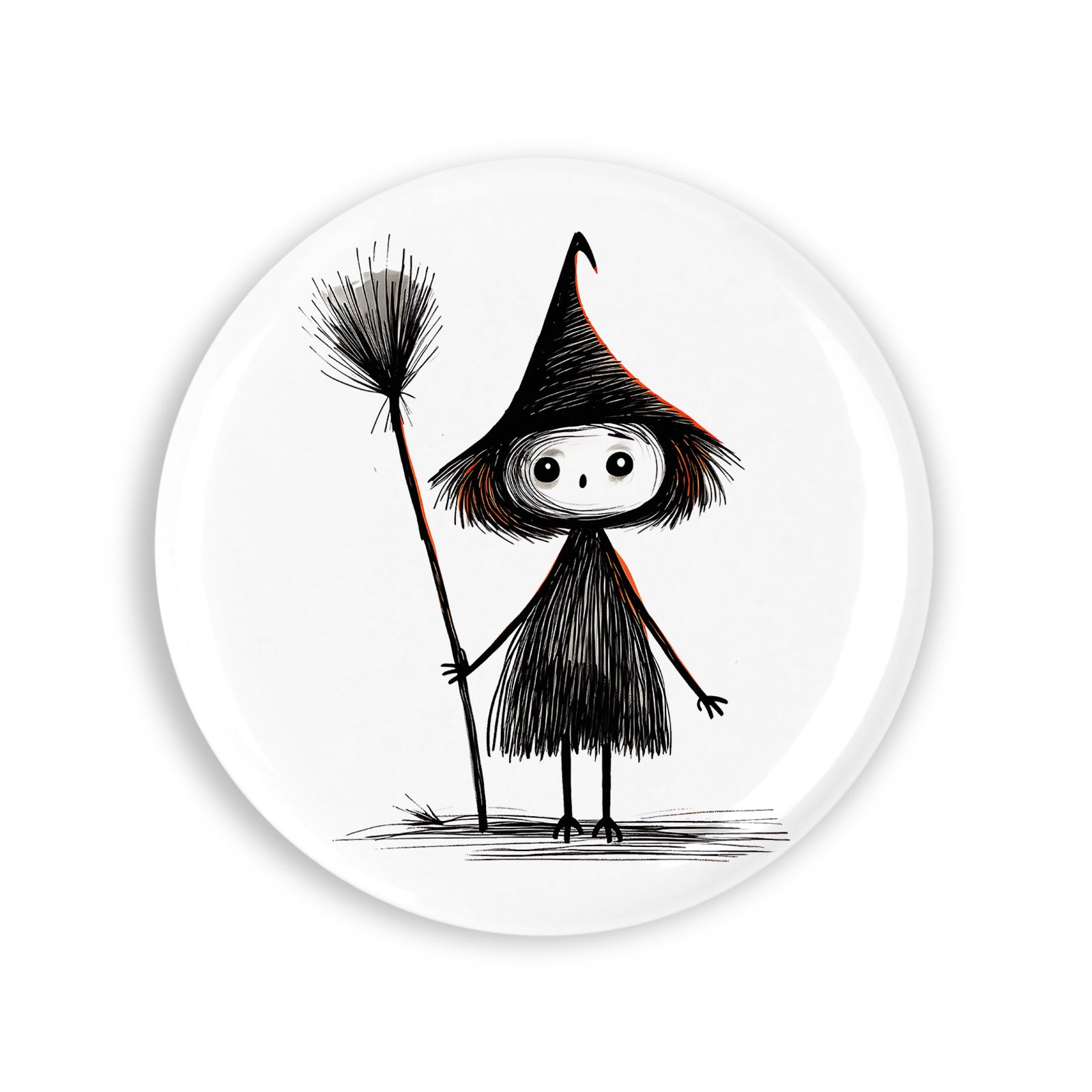 Set 4 insigne, Vrajitoarea cu matura, NO4522, Metal, 44 mm, Multicolor