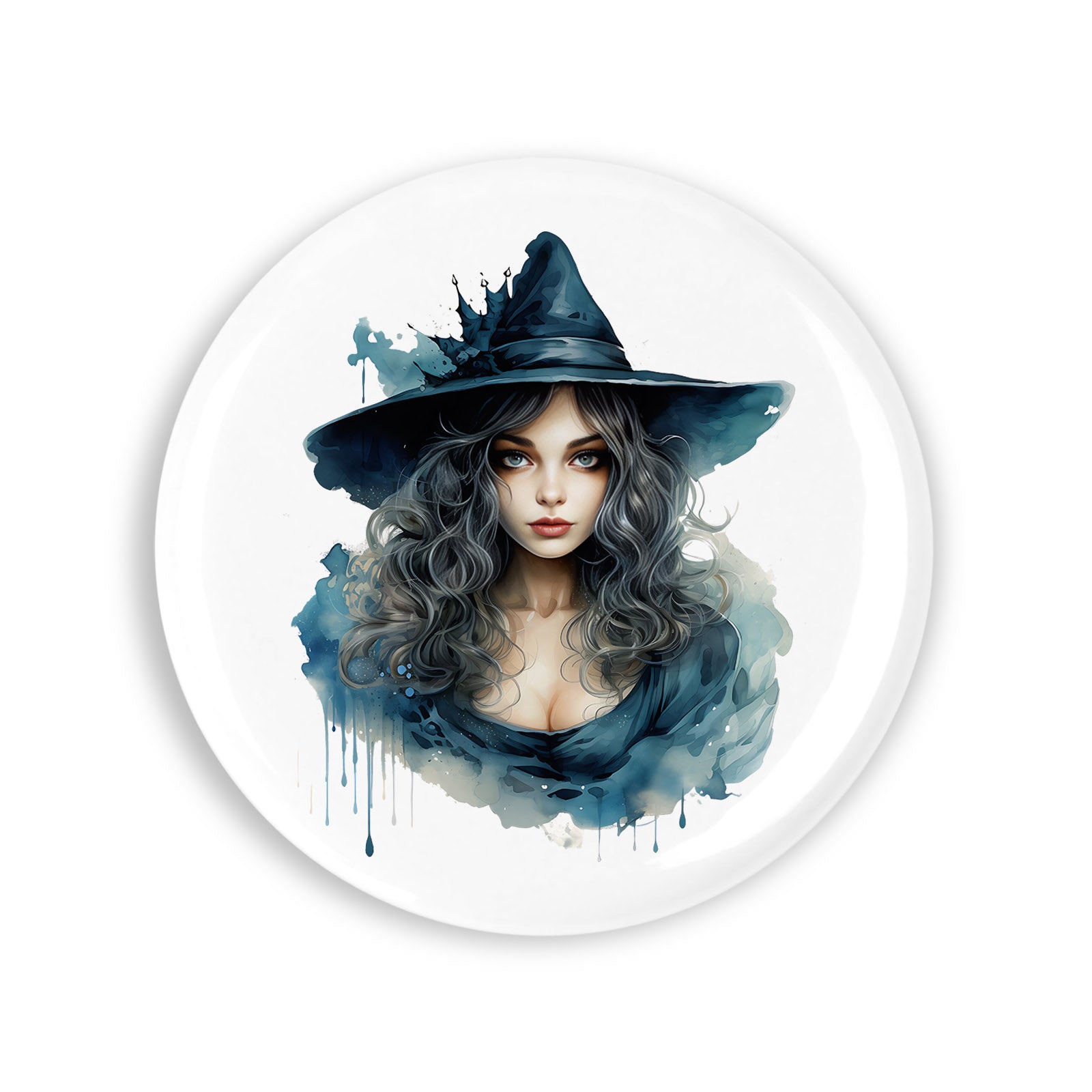 Set 4 insigne, Vrajitoarea cu rochie decoltata, NO3321, Metal, 44 mm, Multicolor
