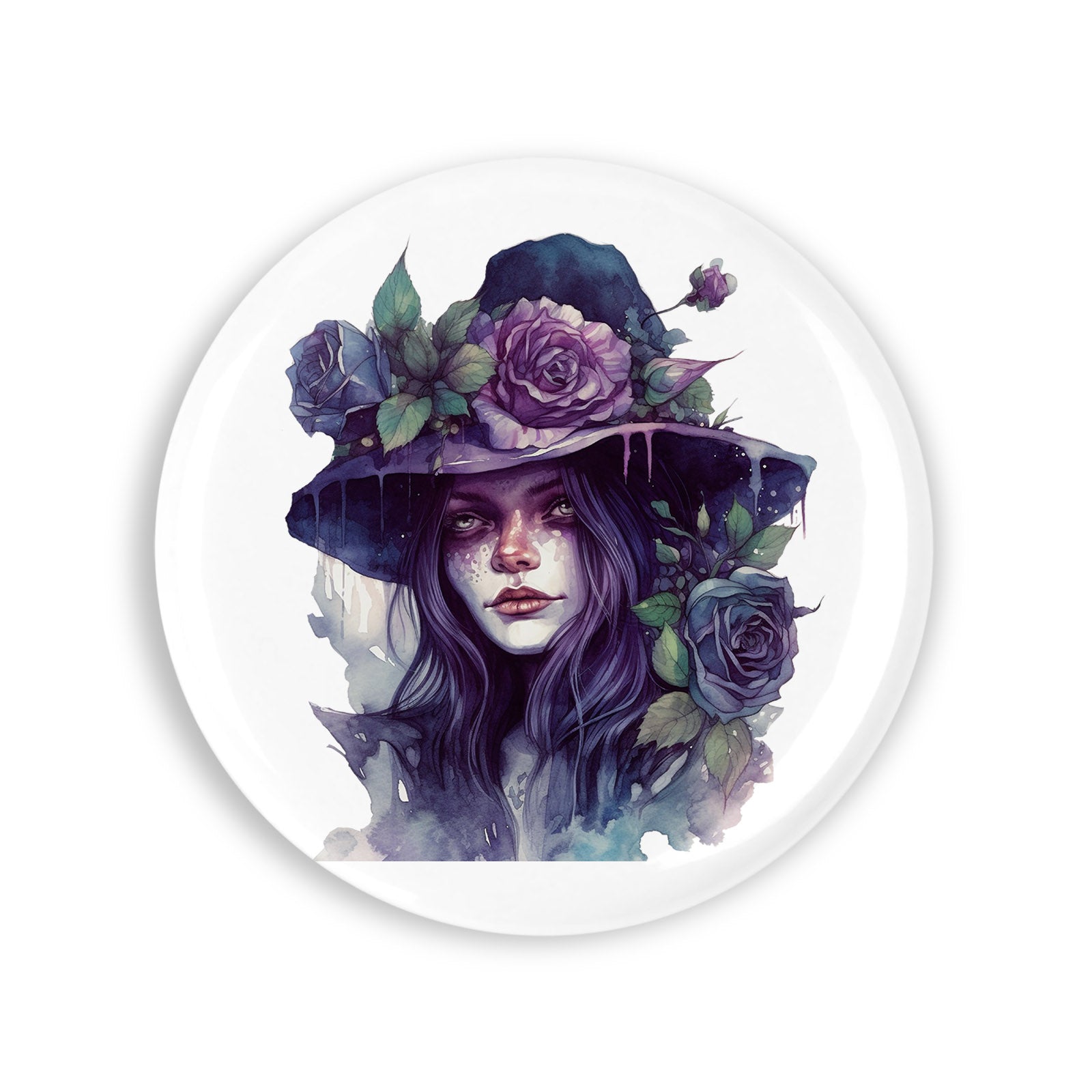Set 4 insigne, Vrajitoarea cu trandafiri mov, NO455, Metal, 44 mm, Multicolor