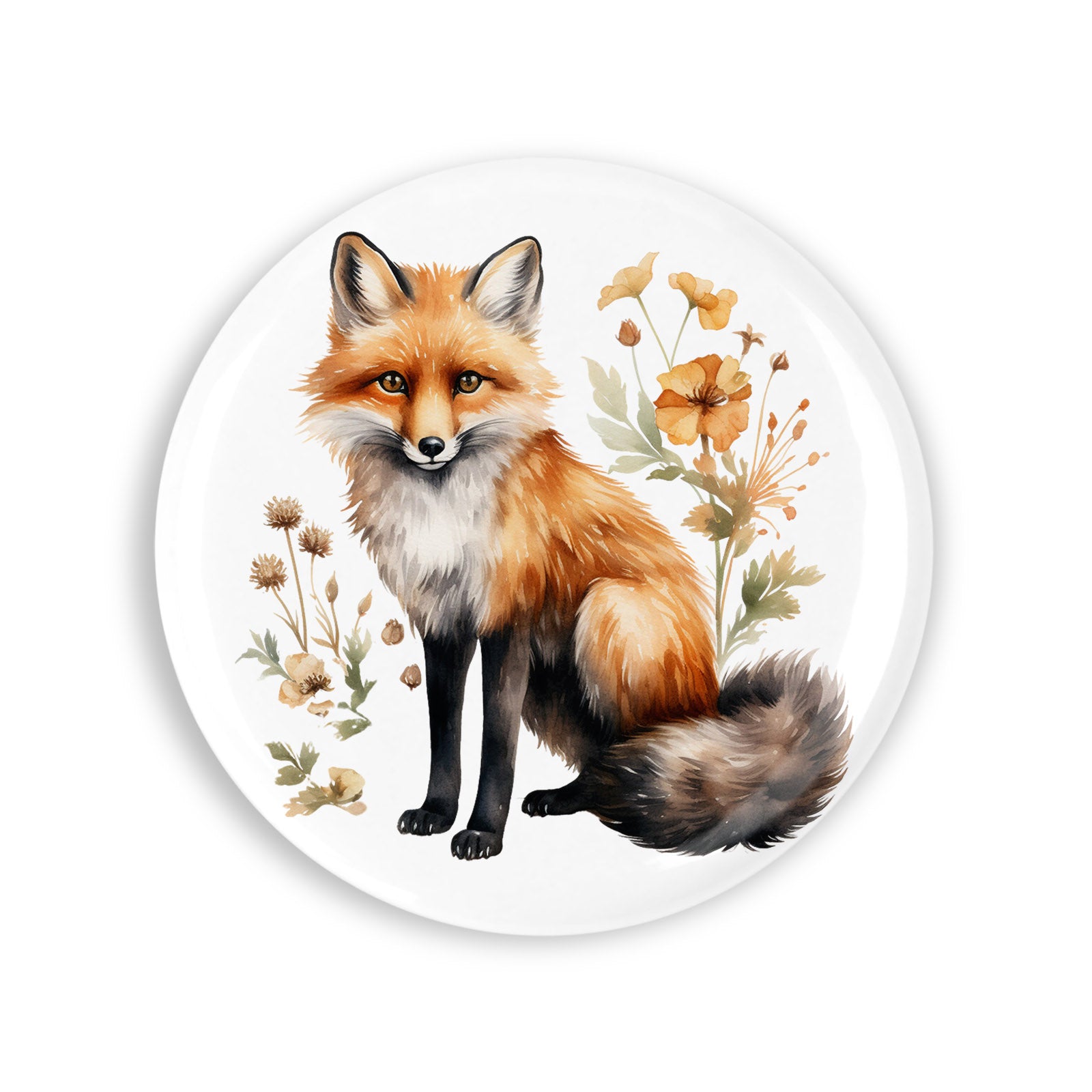 Set 4 insigne, Vulpe printre flori, NO2480, Metal, 44 mm, Multicolor