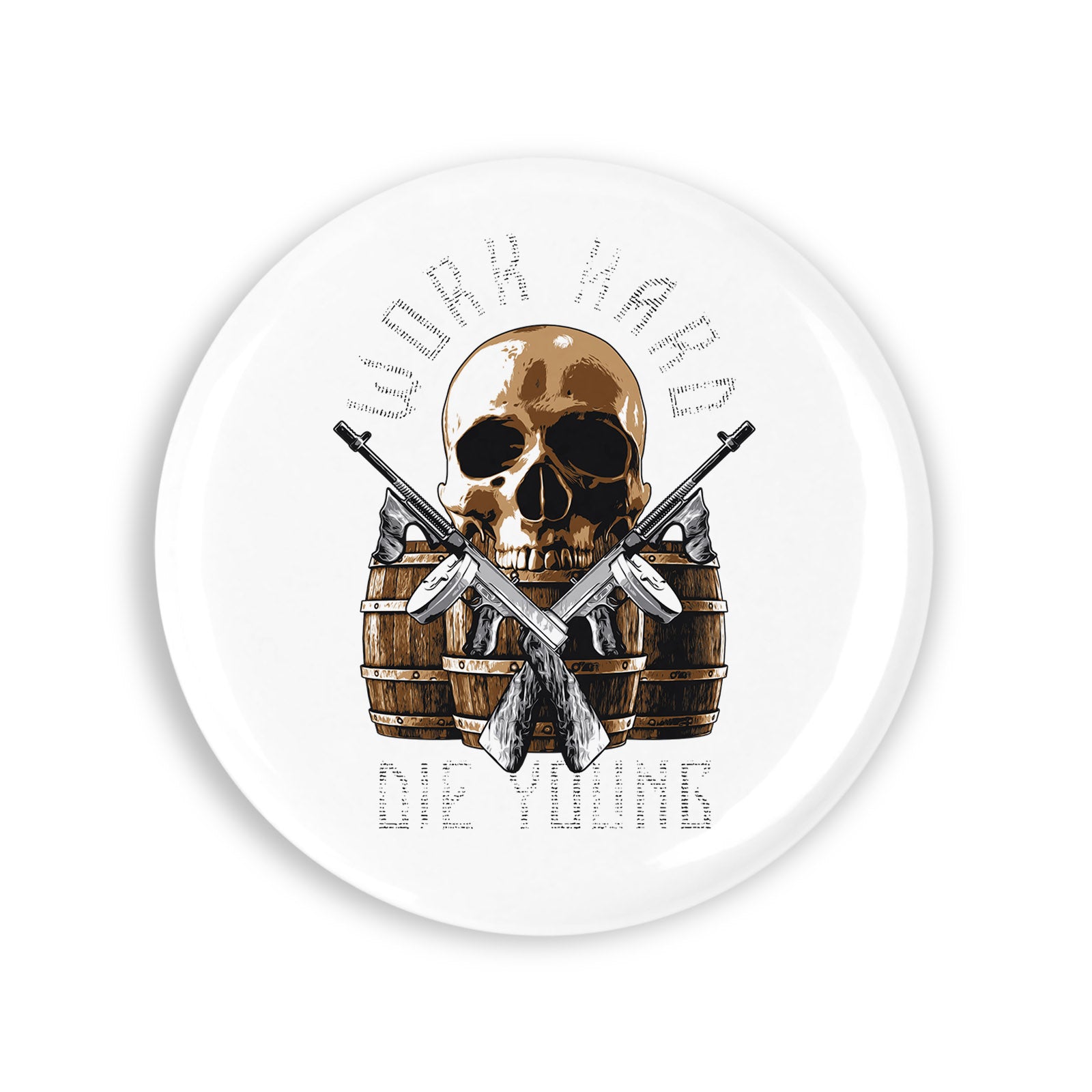 Set 4 insigne, Work hard die young western boutleggers Craniu pe butoaie, NO4247, Metal, 44 mm, Multicolor