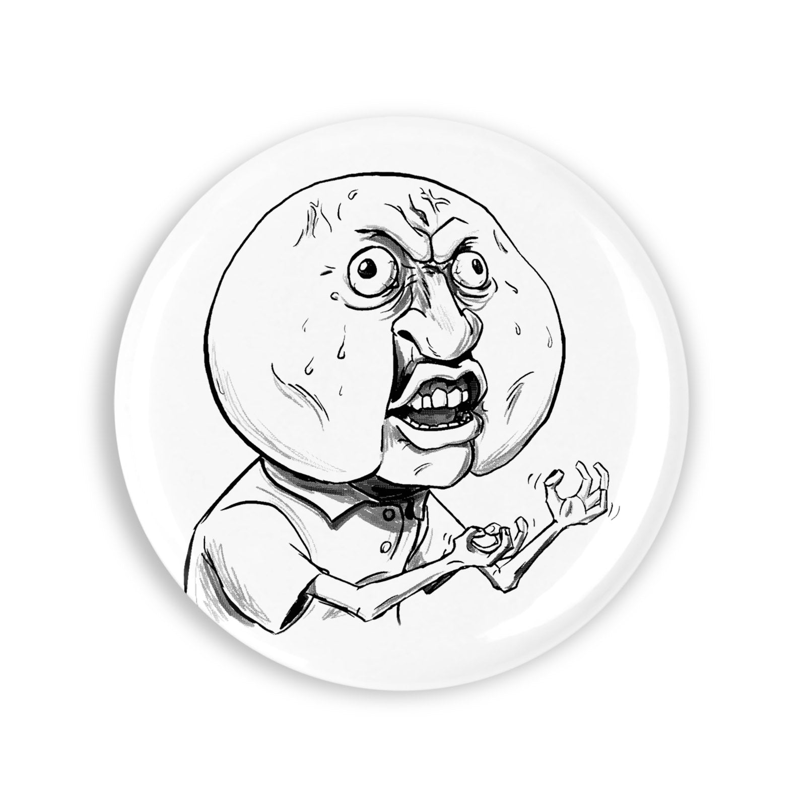 Set 4 insigne, Y U NO Fata de Troll Meme, NO7779, Metal, 44 mm, Multicolor
