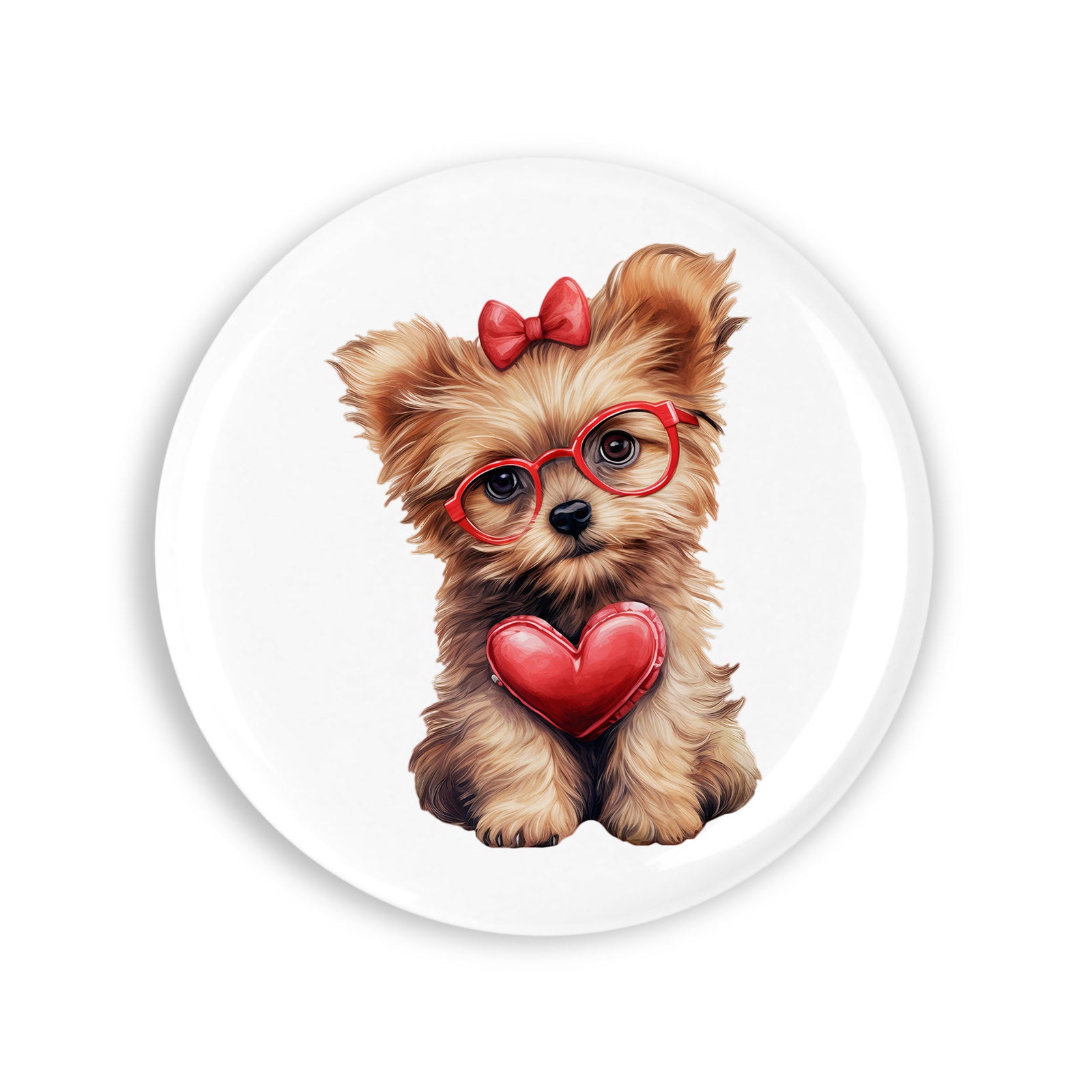 Set 4 insigne, Yorkshire Terrier cu ochelari si funda rosie in caphire Terrier , NO1892, Metal, 44 mm, Multicolor