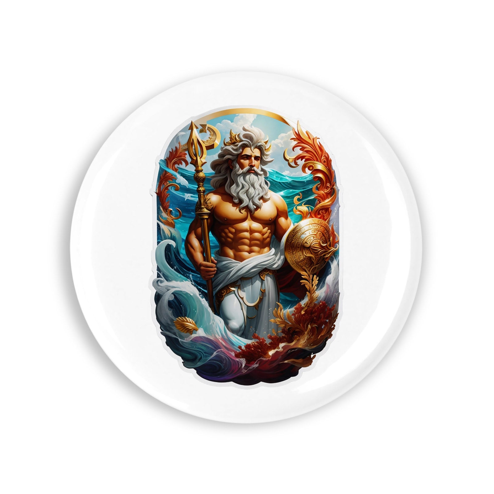 Set 4 insigne, Zeul egiptean Oceanus cu scut si sceptru, NO8624, Metal, 44 mm, Multicolor