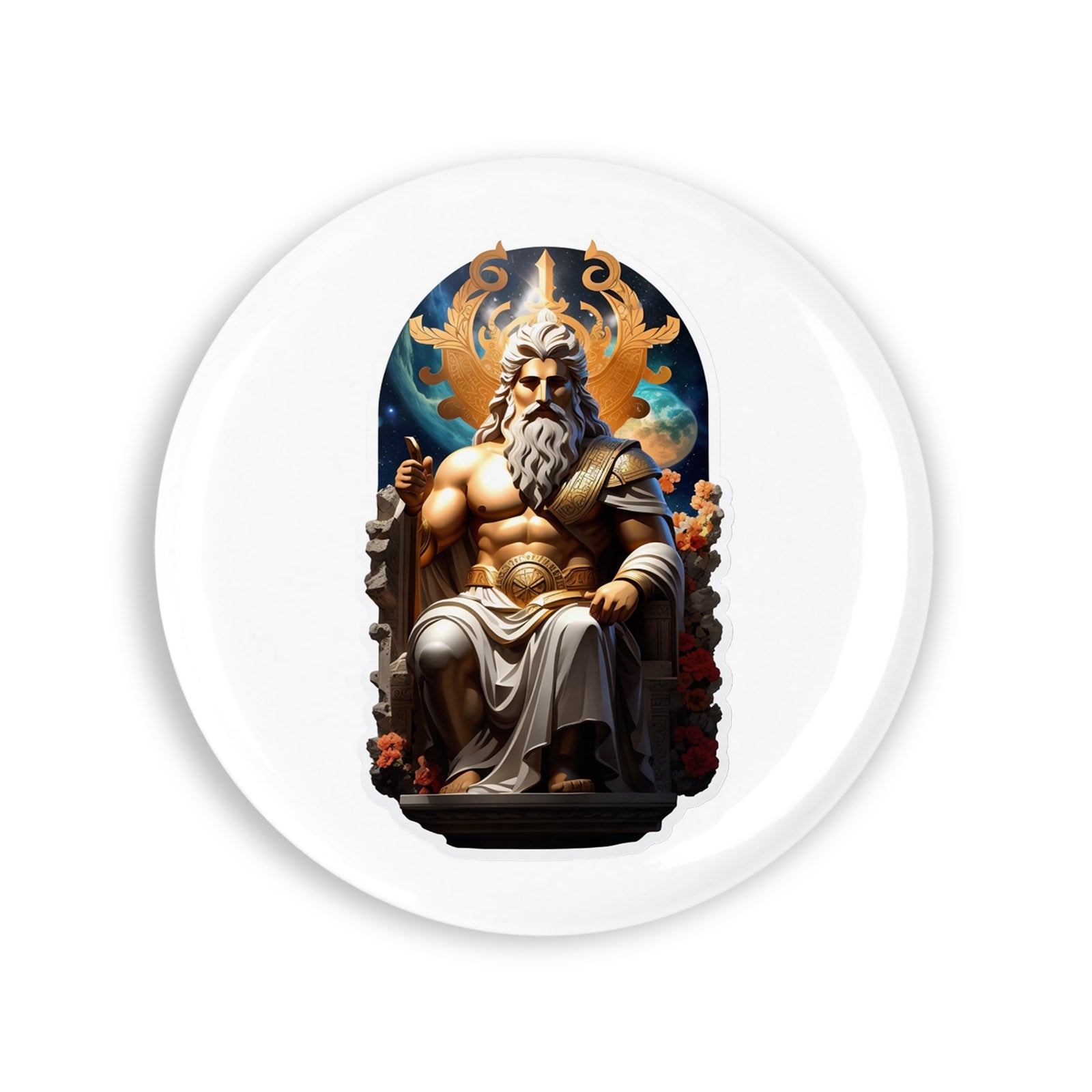 Set 4 insigne, Zeul grec Aether pe tron , NO7593, Metal, 44 mm, Multicolor