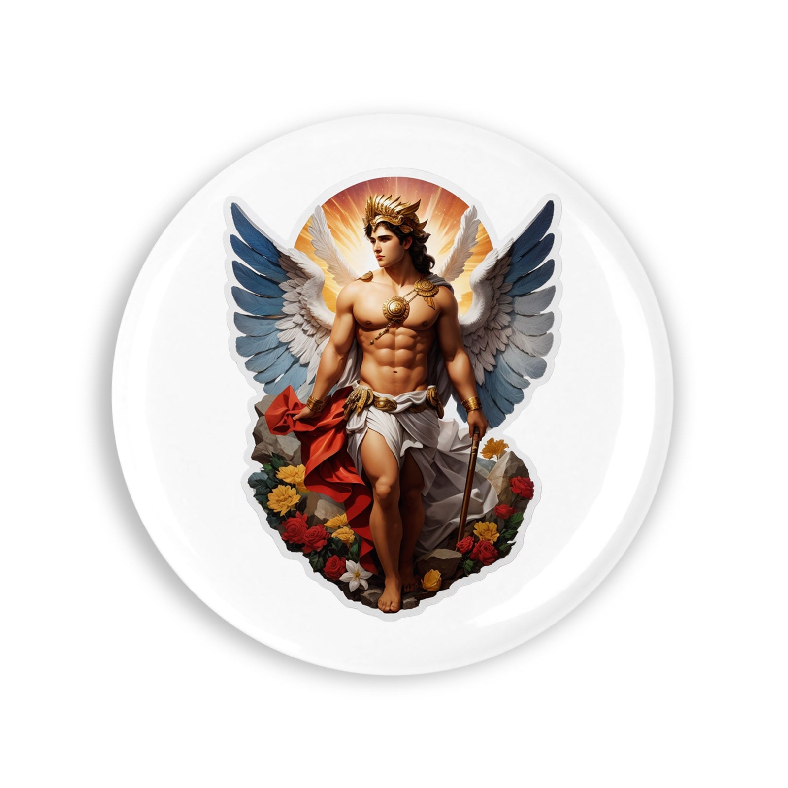 Set 4 insigne, Zeul grec Eros cu aripi si tolba, NO8138, Metal, 44 mm, Multicolor