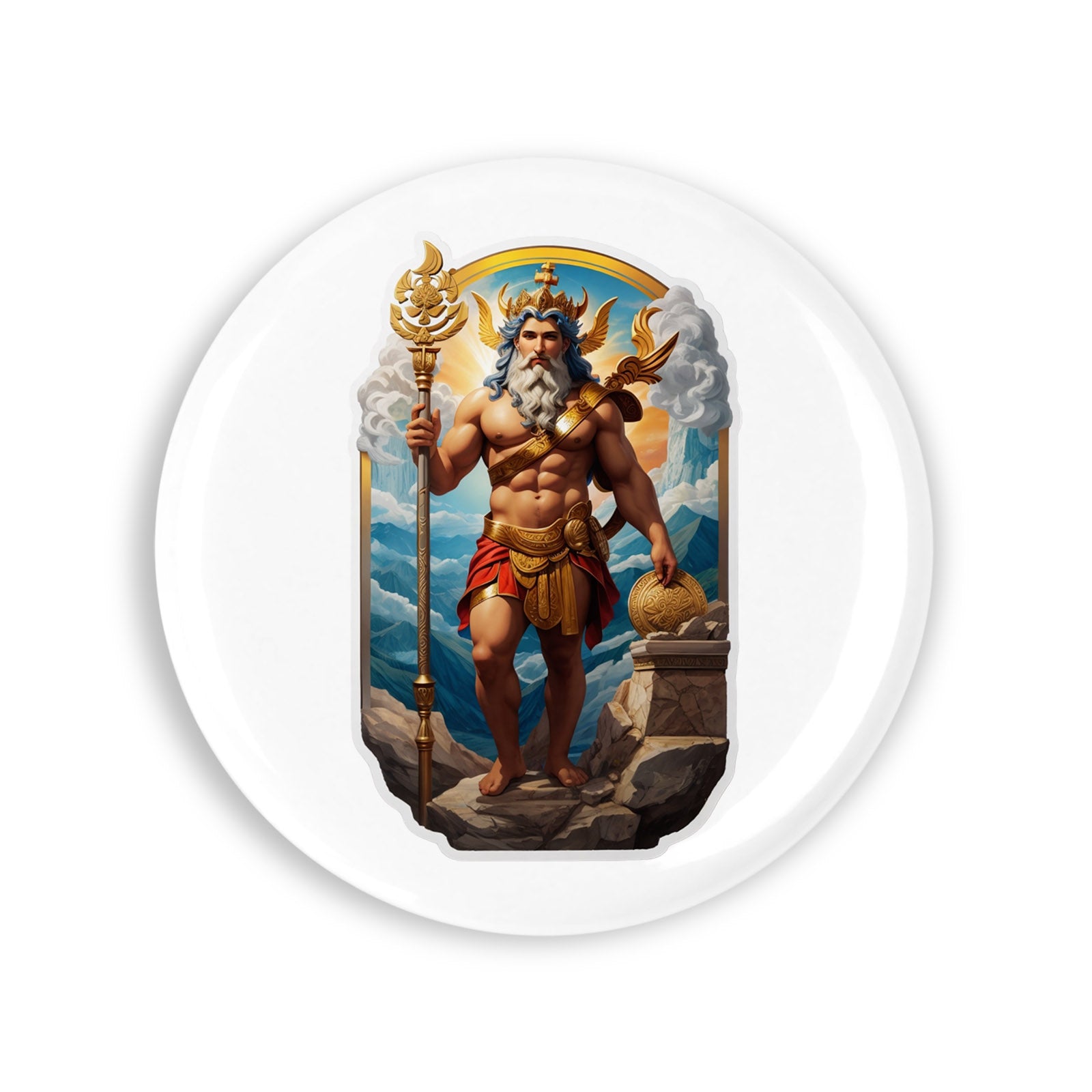 Set 4 insigne, Zeul grec Pan cu sceptru, NO8666, Metal, 44 mm, Multicolor