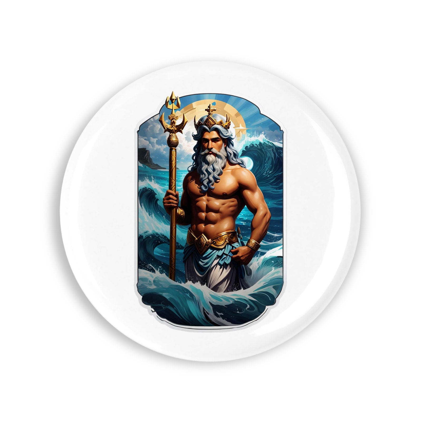 Set 4 insigne, Zeul grec Poseidon cu sceptru, NO8762, Metal, 44 mm, Multicolor