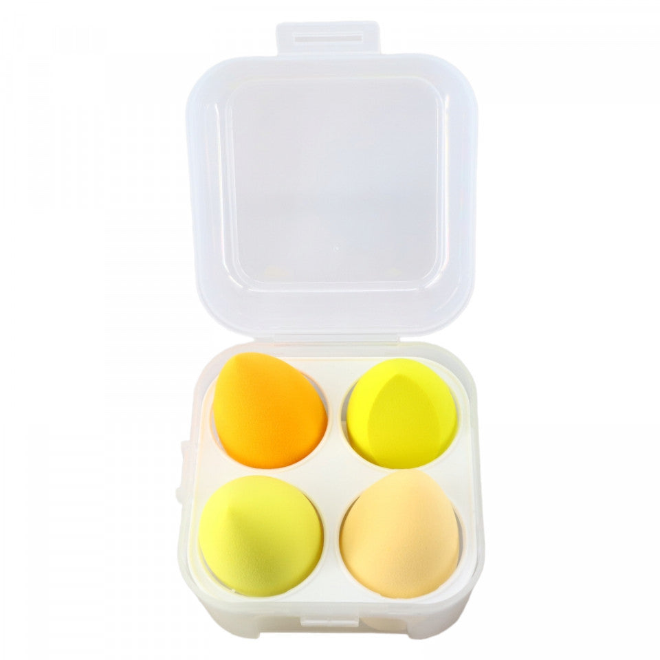 Set 4 buc, Burete machiaj, cutie pentru transport si depozitare tip cofrag, din microfibra, fara latex, non-abrazivi, pentru aplicarea machiajului tip fondului de ten, utilizare umeda si uscata, NO987, Multicolor