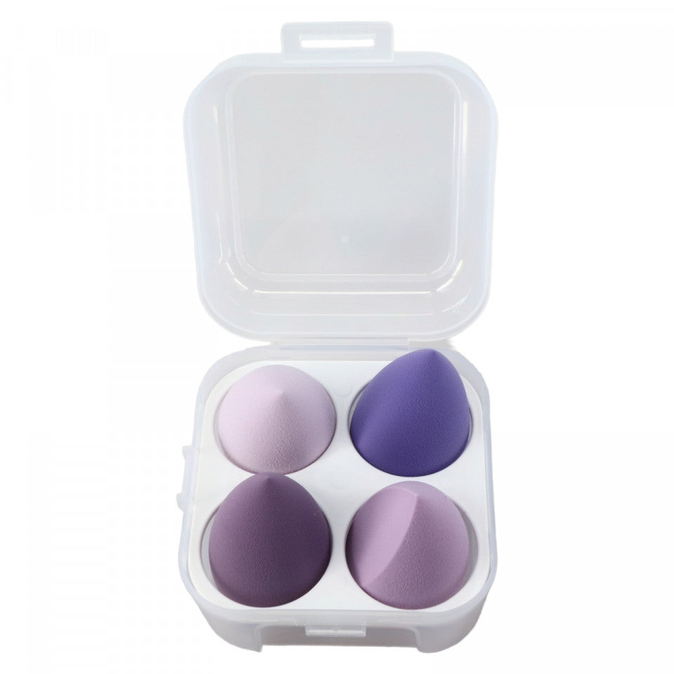 Set 4 buc, Burete machiaj, cutie pentru transport si depozitare tip cofrag, din microfibra, fara latex, non-abrazivi, pentru aplicarea machiajului tip fondului de ten, utilizare umeda si uscata, NO988, Multicolor