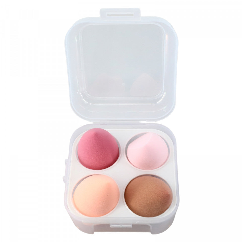 Set 4 buc, Burete machiaj, cutie pentru transport si depozitare tip cofrag, din microfibra, fara latex, non-abrazivi, pentru aplicarea machiajului tip fondului de ten, utilizare umeda si uscata, NO989, Multicolor