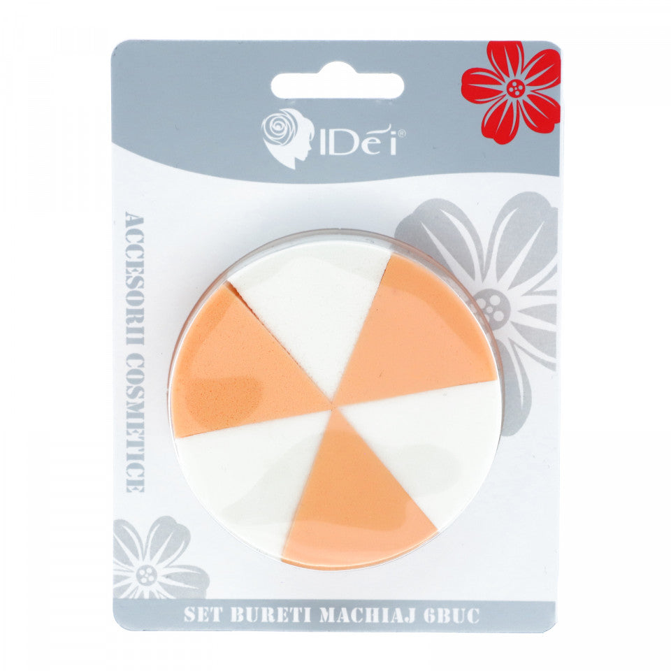 Set 6 bucati, Burete pentru machiaj, model triunghi, Multicolor
