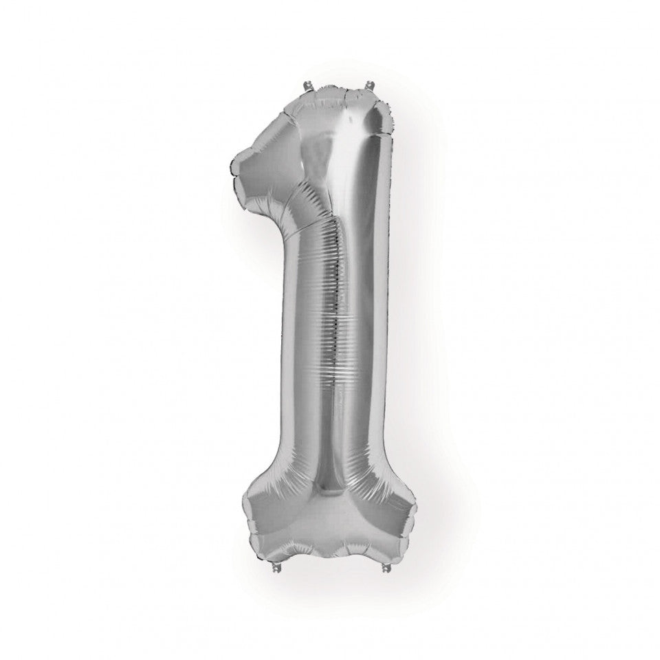 Balon din folie metalizata, 80 cm, cifra 1, Argintiu