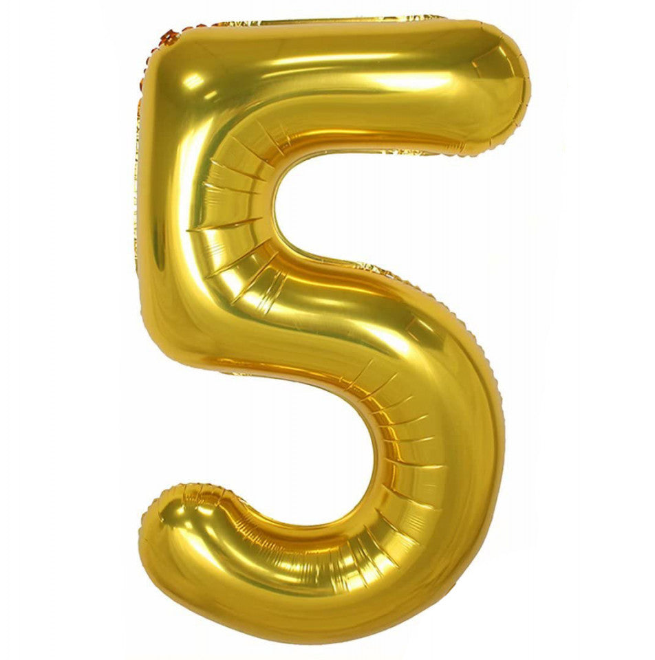 Balon din folie metalizata, 80 cm, cifra 5, Auriu