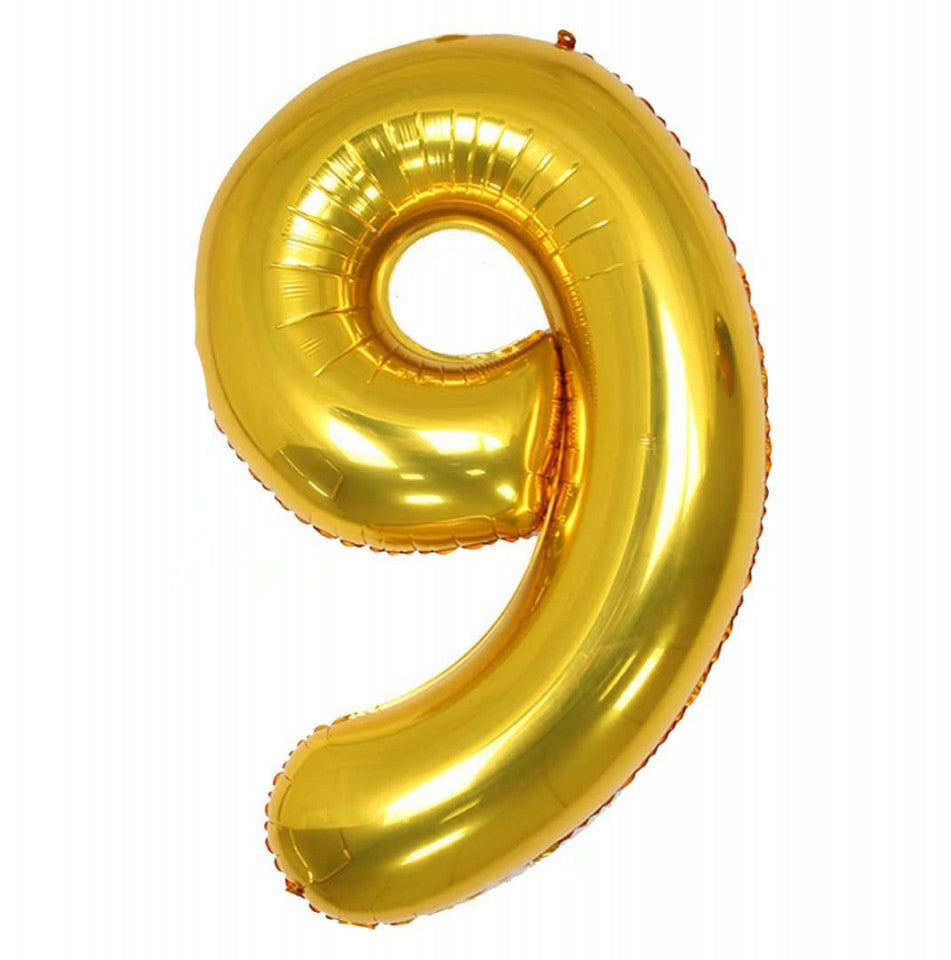 Balon din folie metalizata, 80 cm, cifra 9, Auriu