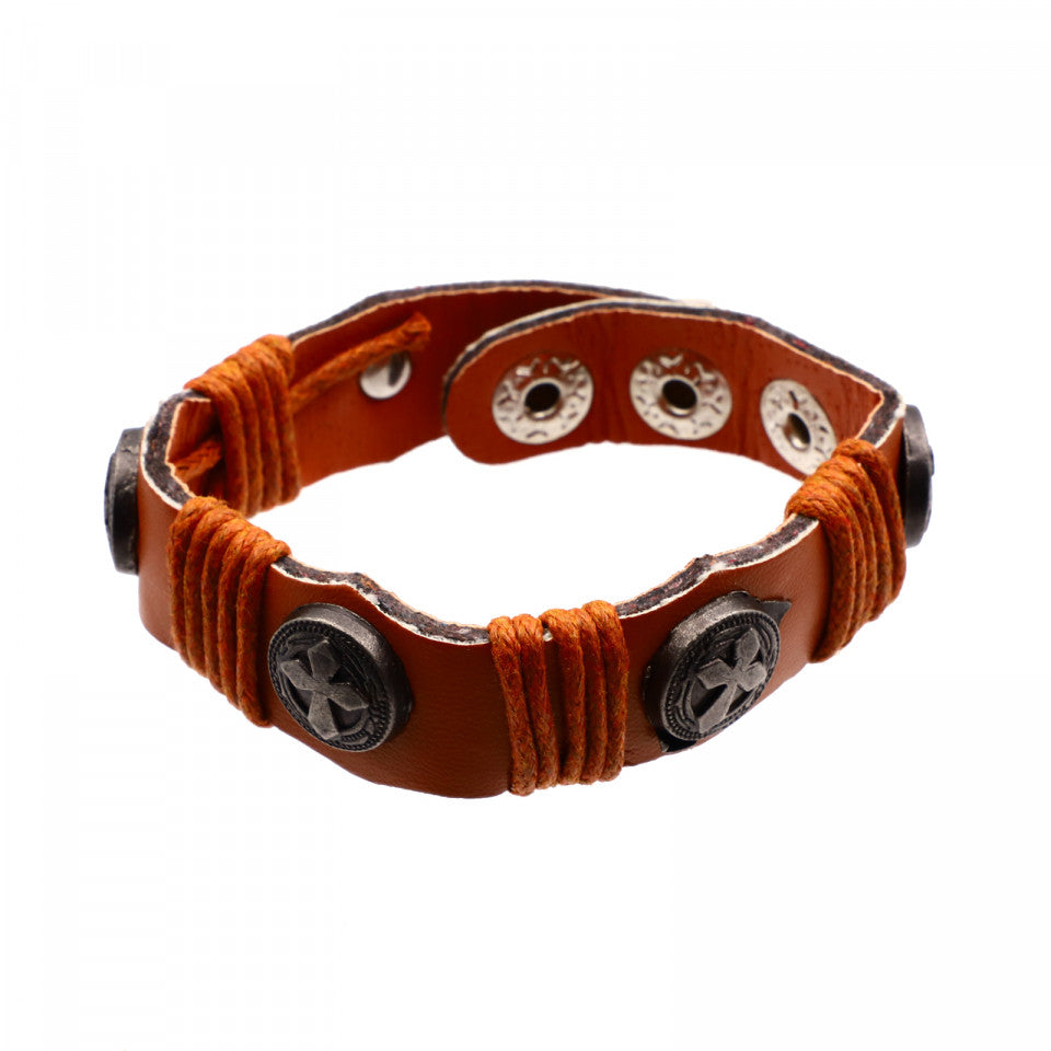 Bratara pentru barbati din piele, inchidere cu capse, Maro deschis