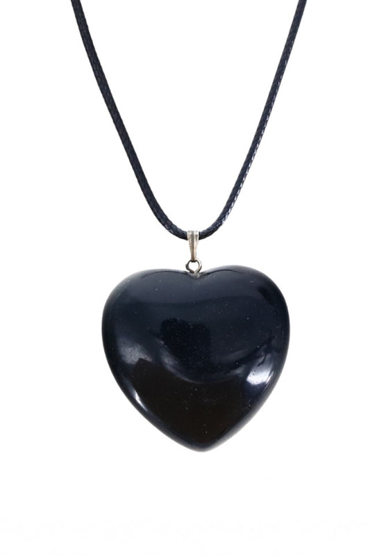 Pandantiv piatra semipretioasa cu lantisor, Onix, Inima, NO162, 3.5 cm, Negru