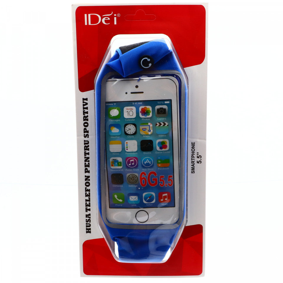 Borseta sport pentru telefon cu iesire pentru casti, ajustabila, impermeabila, 5.5", Albastru