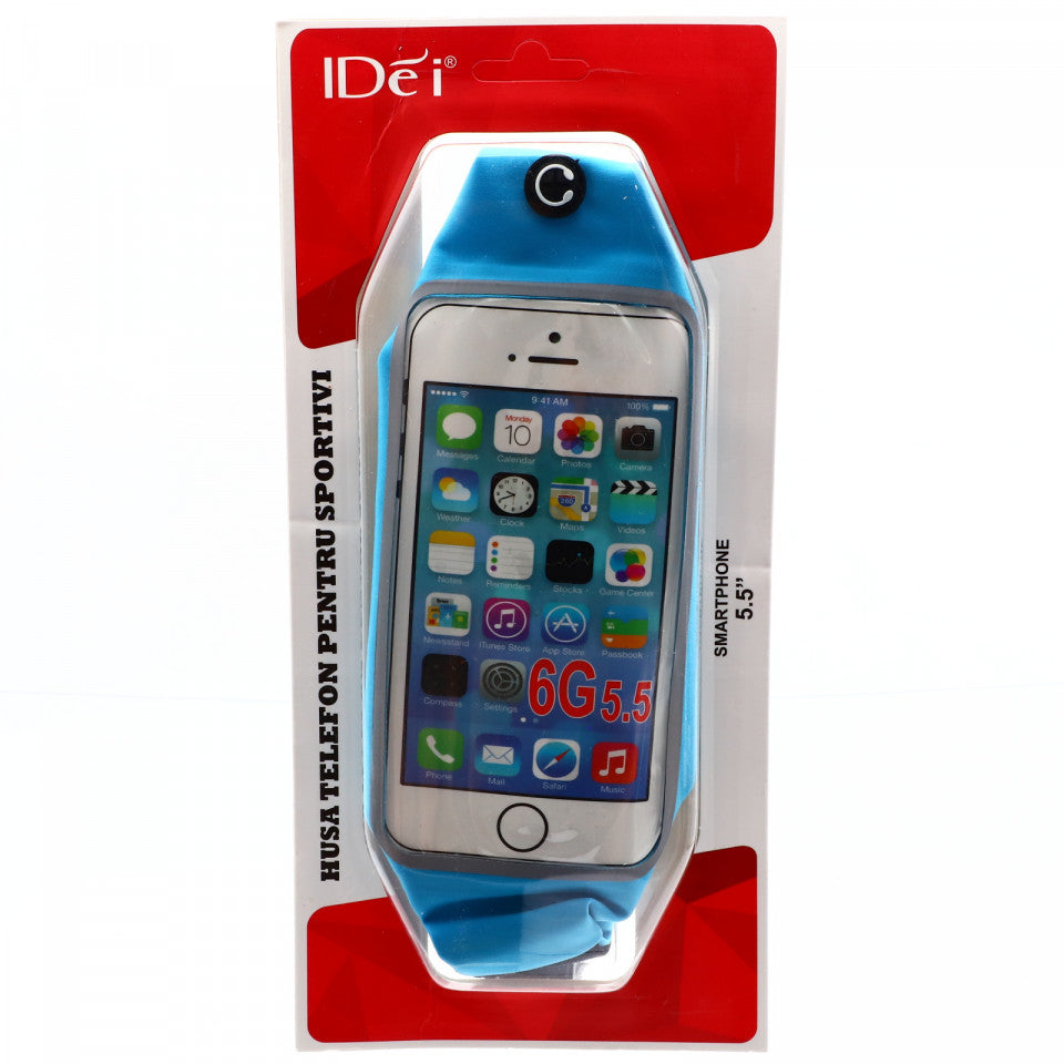 Borseta sport pentru telefon cu iesire pentru casti, ajustabila, impermeabila, 5.5", Bleu