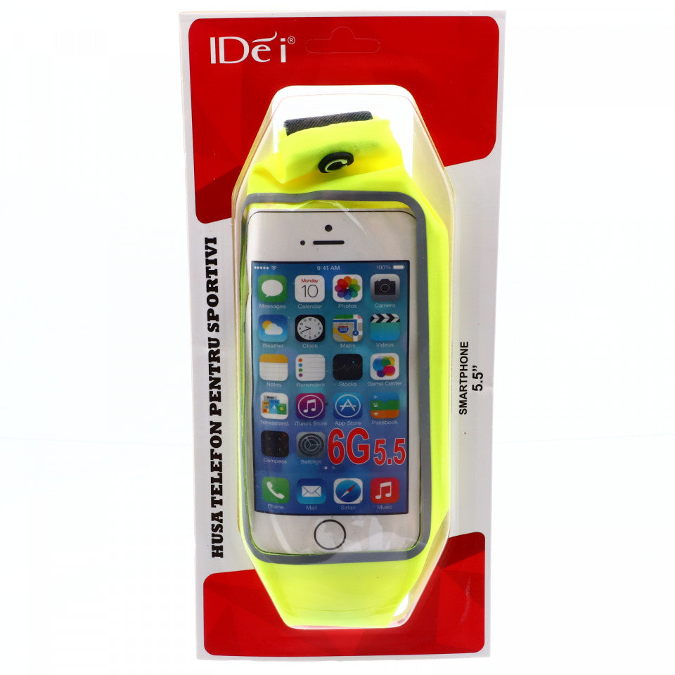 Borseta sport pentru telefon cu iesire pentru casti, ajustabila, impermeabila, 5.5", Galben fluorescent