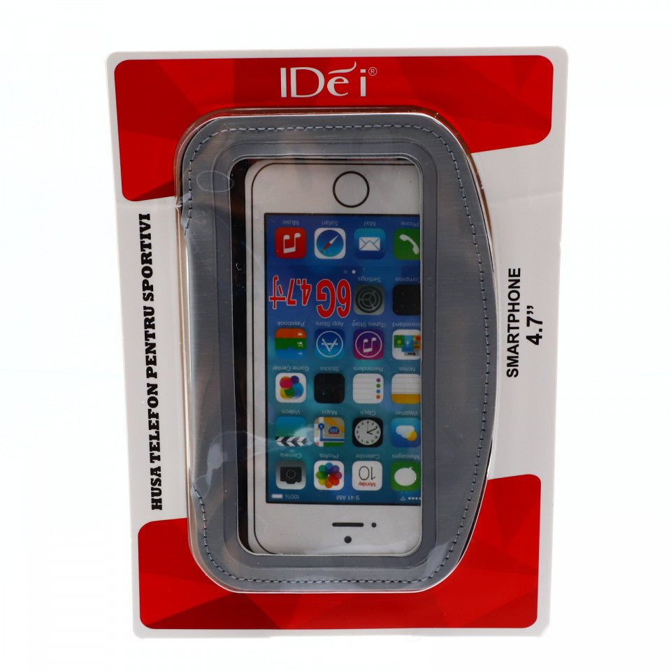 Husa de telefon tip banderola brat / mana pentru alergat, sala, bicicleta, 4.7", 14.5 x 7 cm, Argintiu