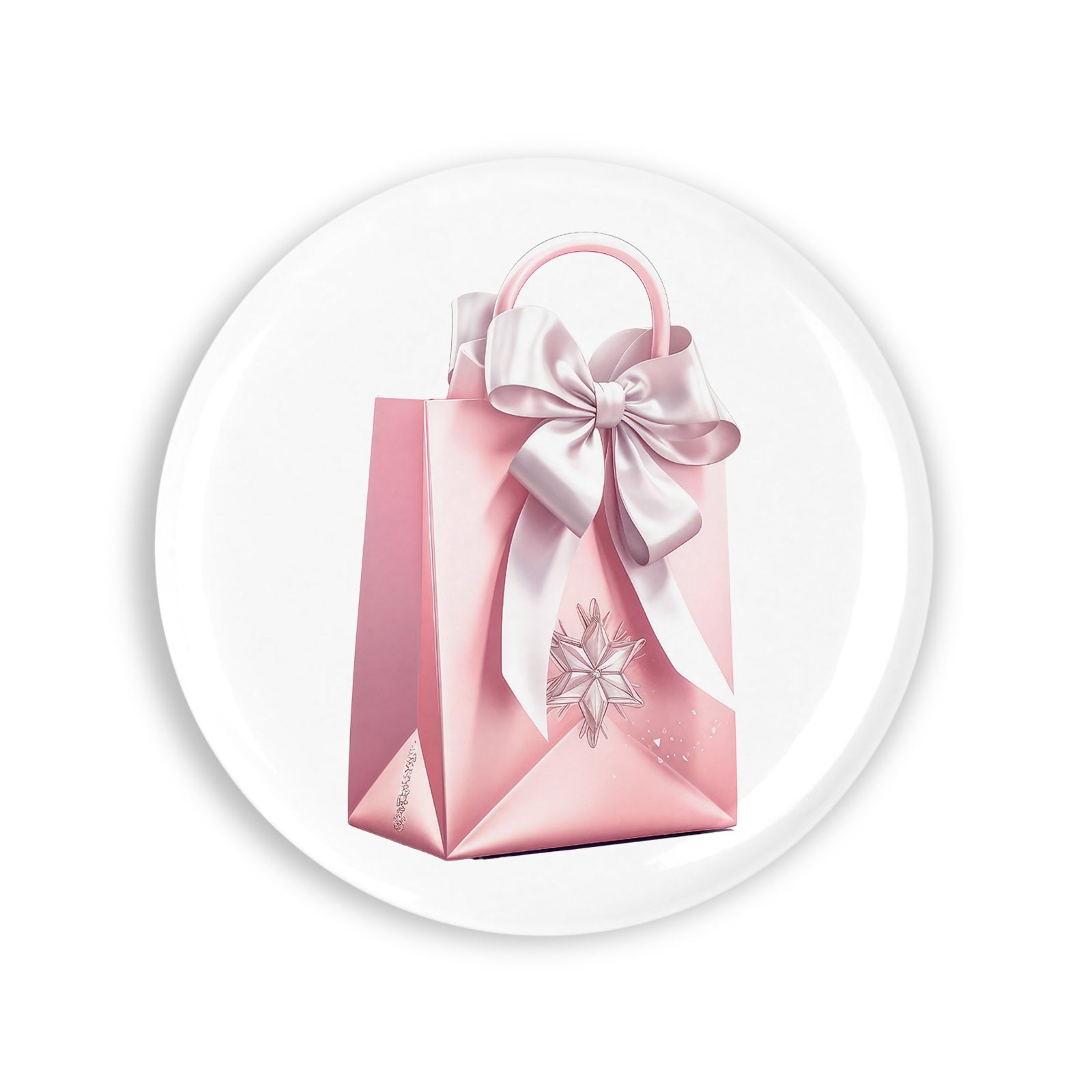 - Set 4 insigne, Punga de cadouri roz cu funda, NO4541, Metal, 44 mm, Multicolor