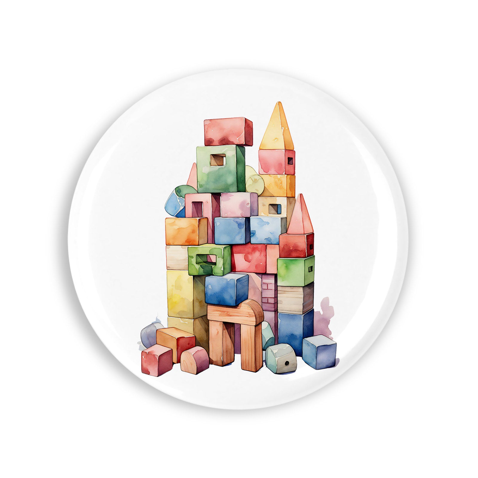 - Set 4 insigne, Puzzle din lemn, NO2654, Metal, 44 mm, Multicolor