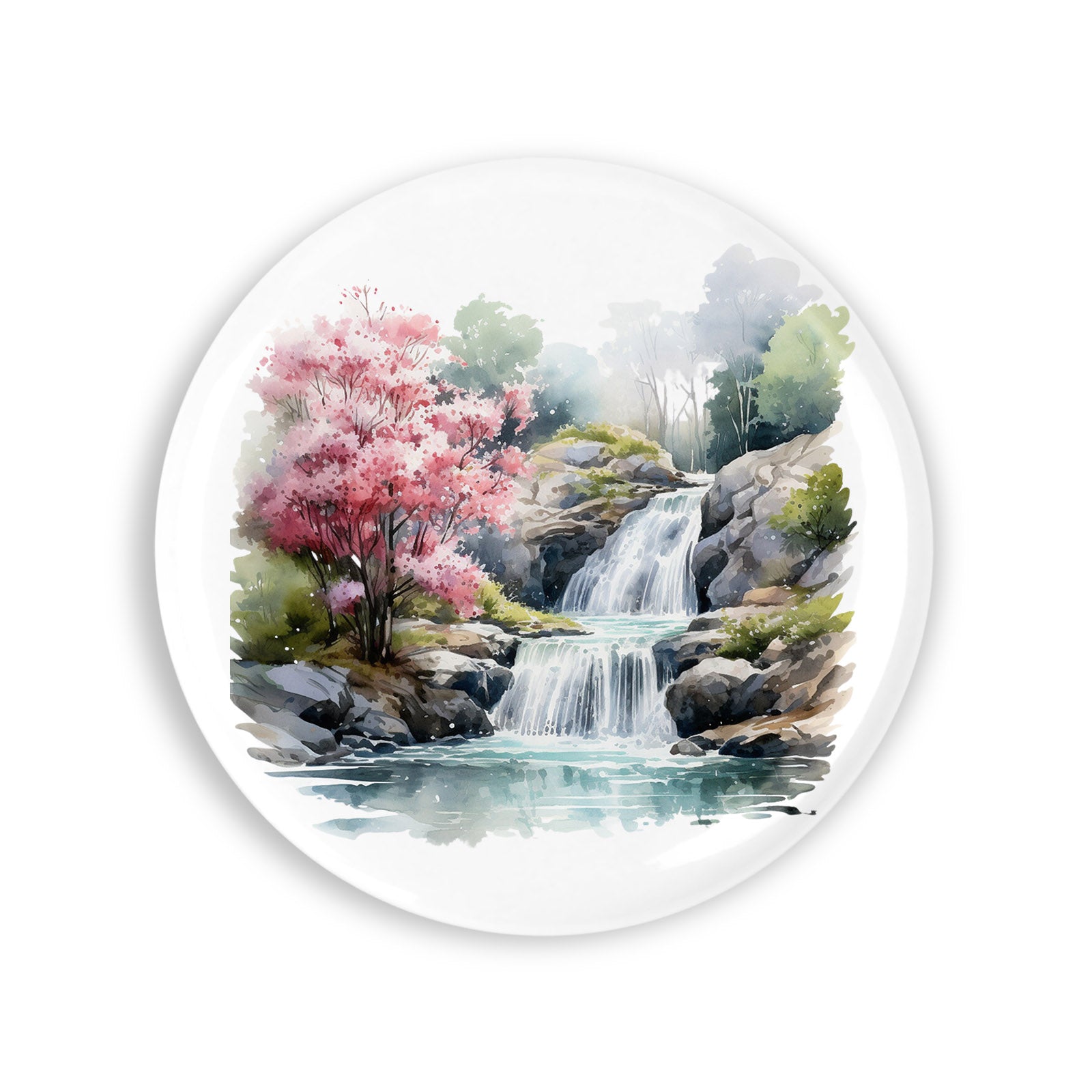 - Set 4 insigne, Cascada cu copaci infloriti, NO4584, Metal, 44 mm, Multicolor
