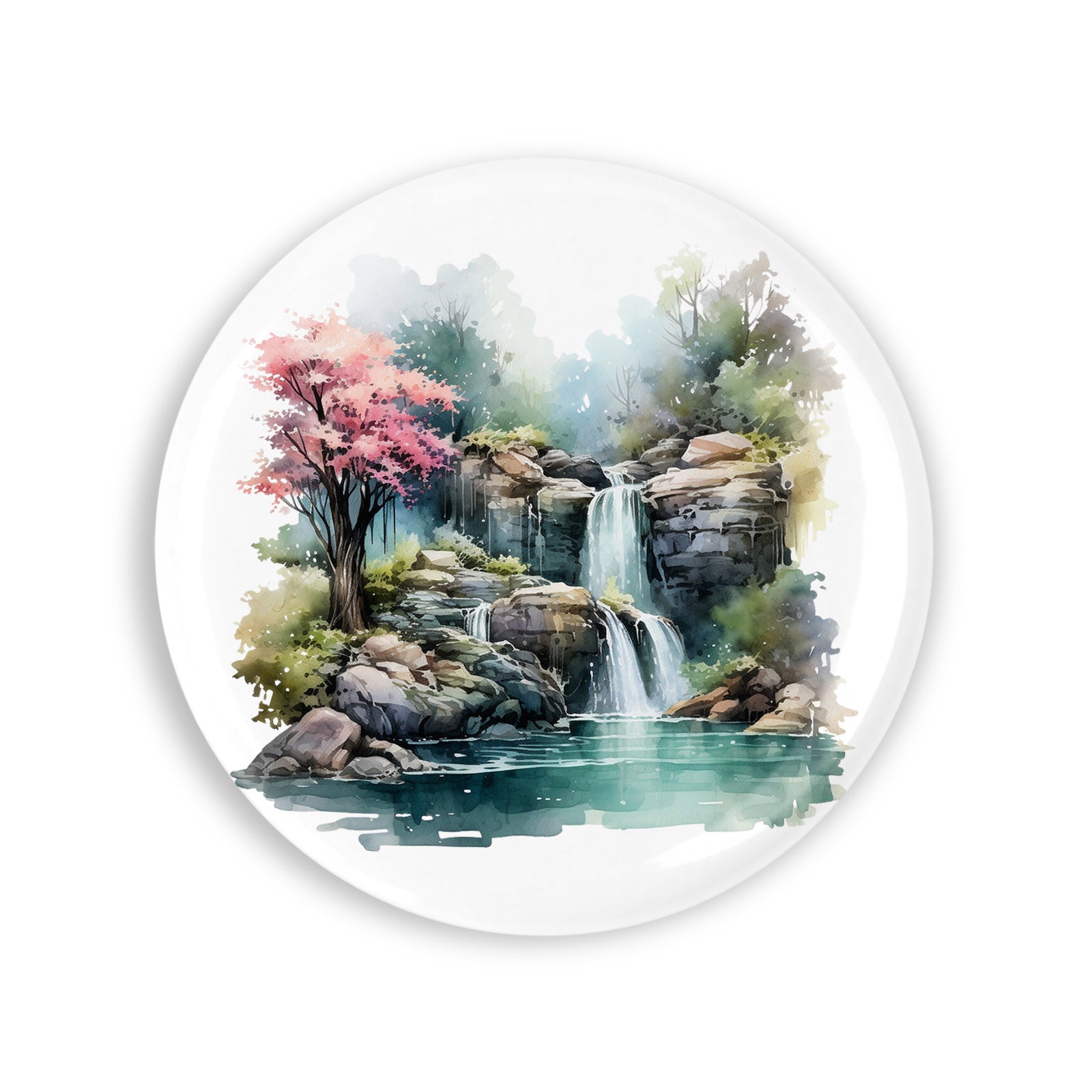 - Set 4 insigne, Cascada din padure, NO886, Metal, 44 mm, Multicolor