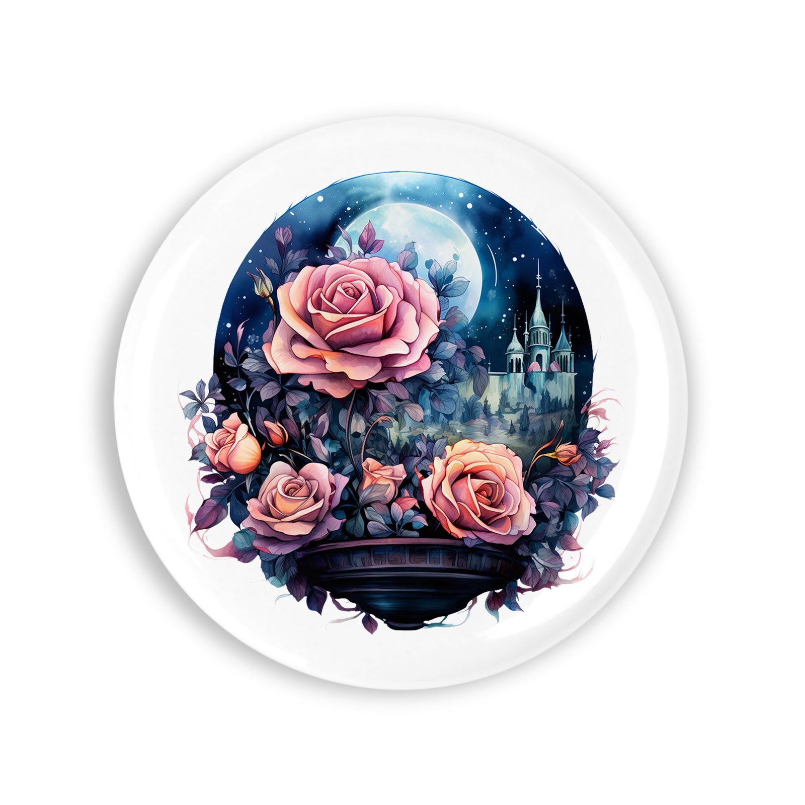 - Set 4 insigne, Castelul albastru cu trandafiri, NO4031, Metal, 44 mm, Multicolor