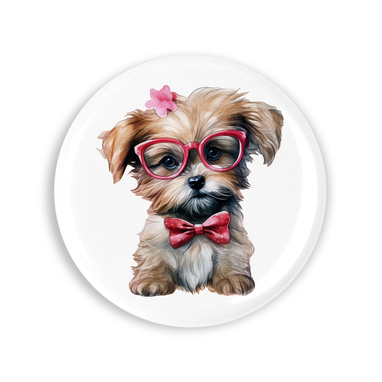 - Set 4 insigne, Catelus cu floare in par, NO4676, Metal, 44 mm, Multicolor