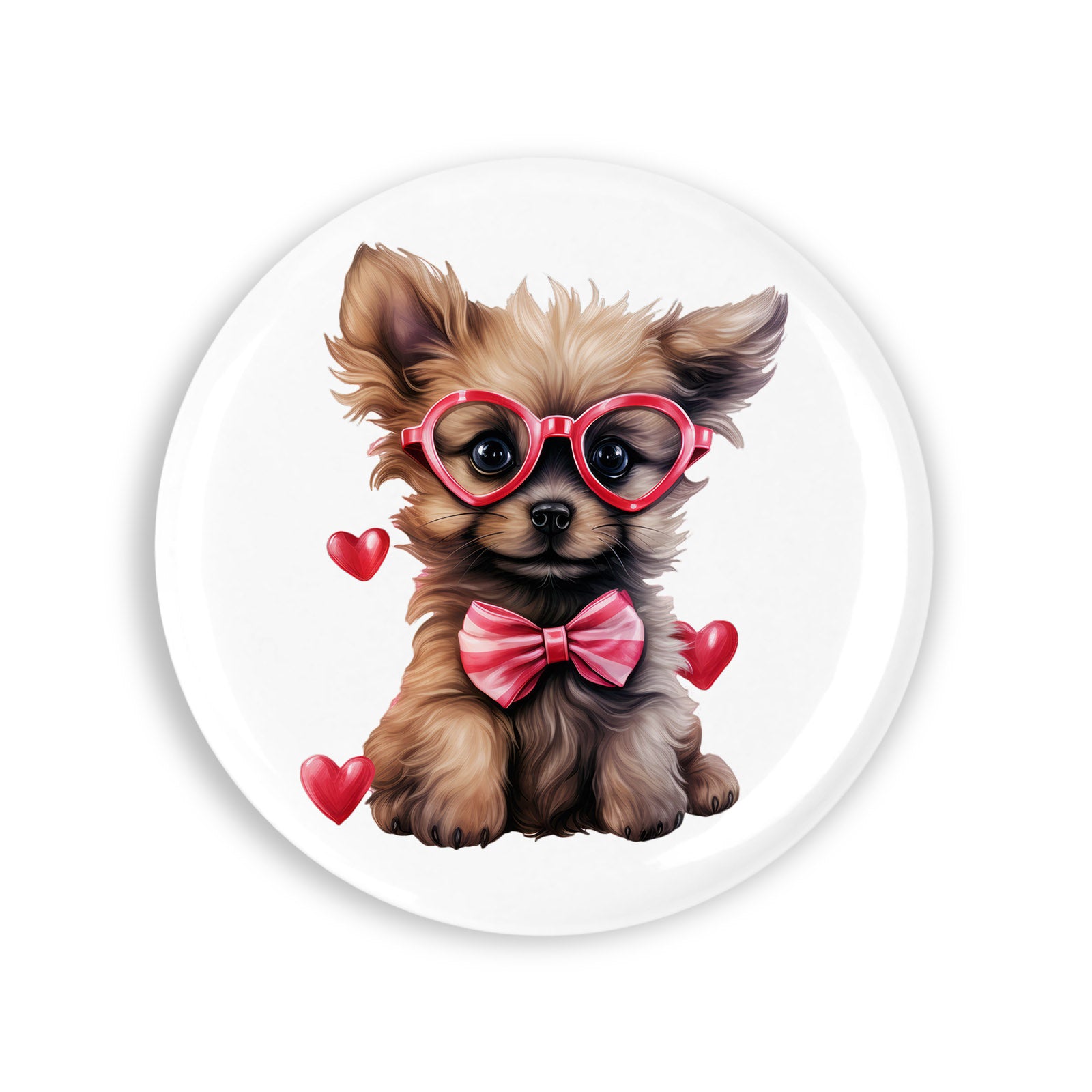 - Set 4 insigne, Catelus cu ochelari inimioare, NO4253, Metal, 44 mm, Multicolor