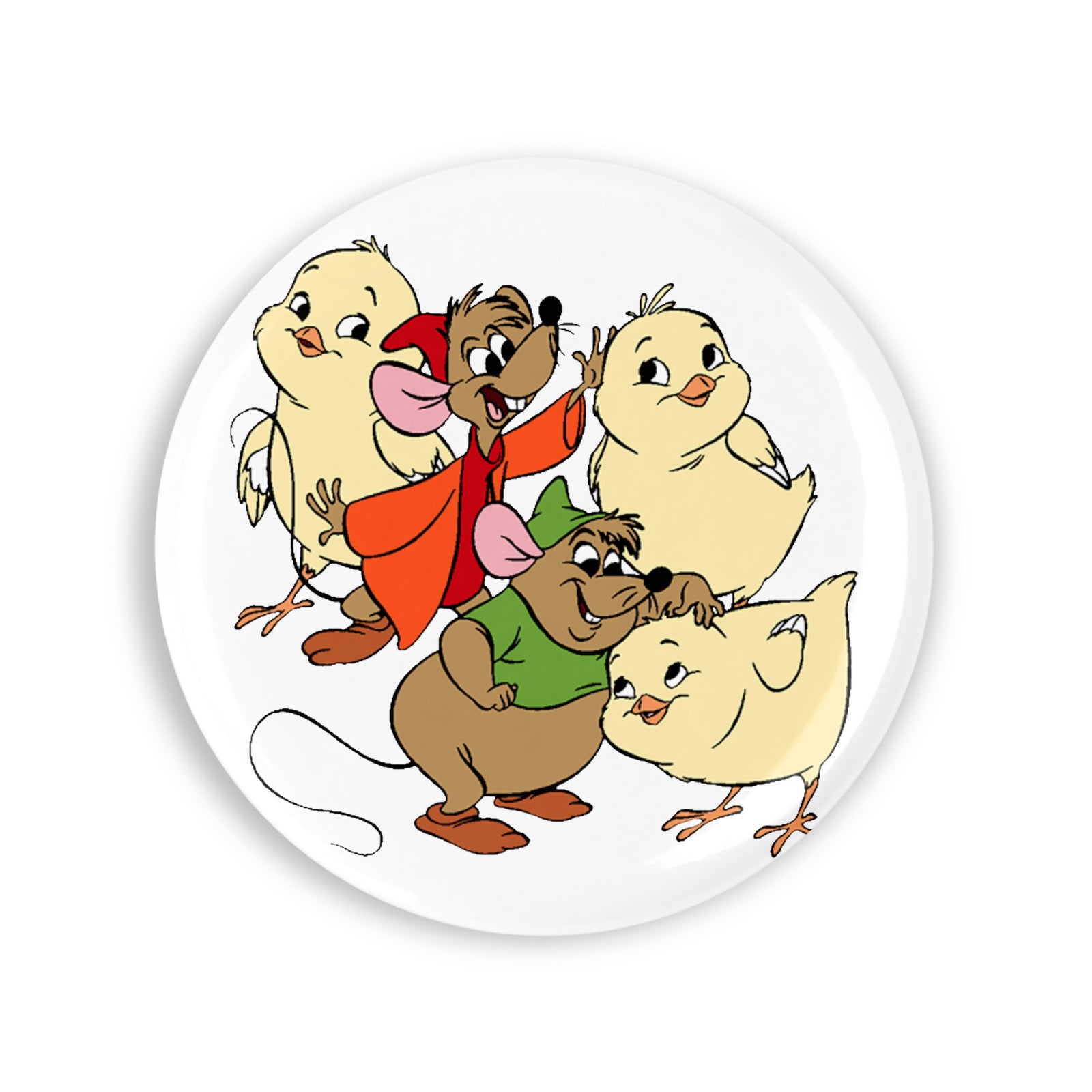 - Set 4 insigne, Cenusareasa Jaq si Gus se joaca cu puii, NO9606, Metal, 44 mm, Multicolor