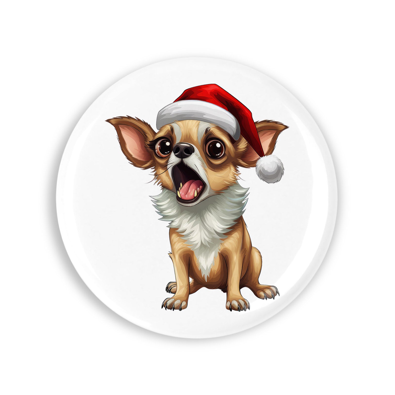 - Set 4 insigne, Chihuahua cu caciula de craciun, NO4510, Metal, 44 mm, Multicolor