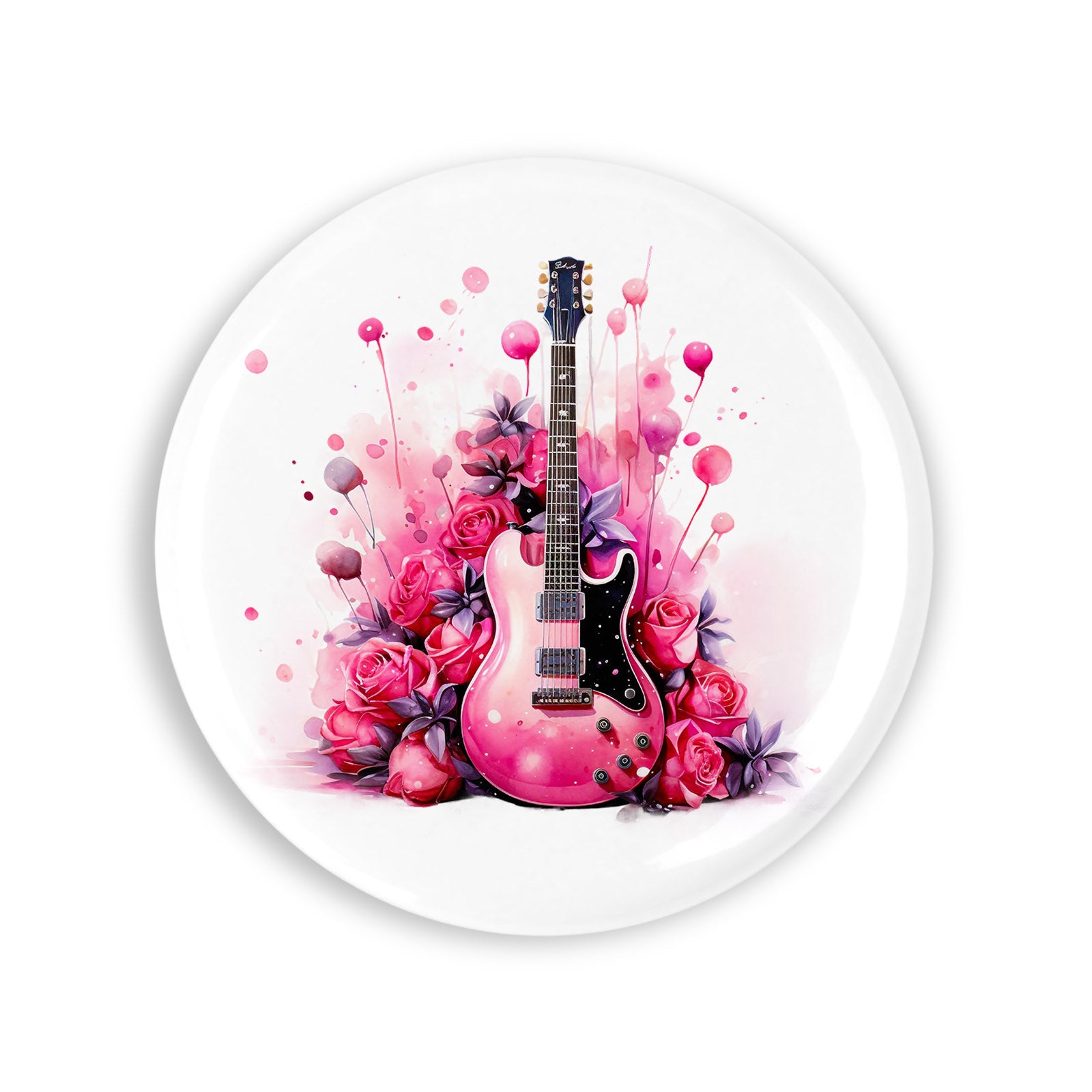- Set 4 insigne, Chitara cu trandafiri roz, NO1572, Metal, 44 mm, Multicolor