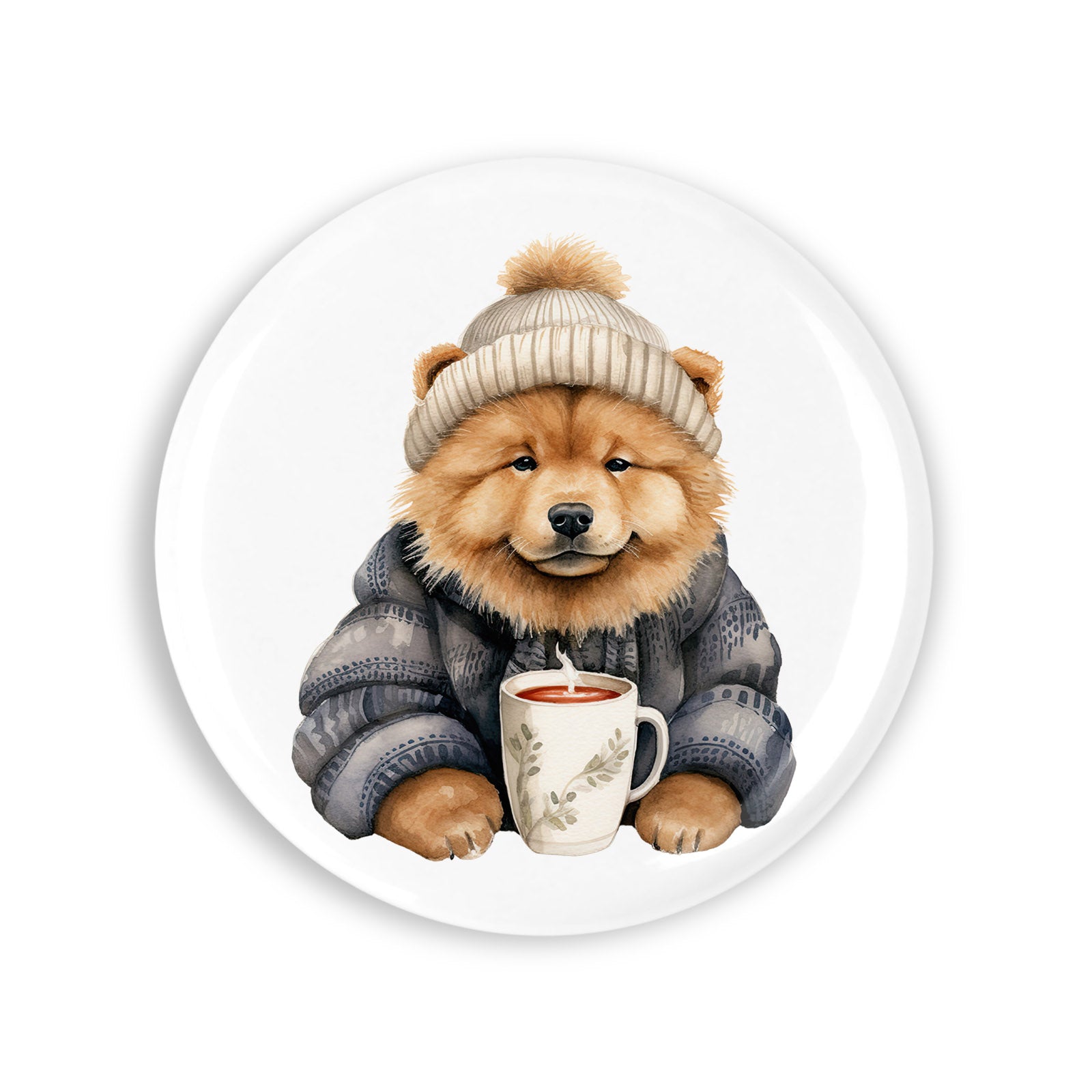 - Set 4 insigne, Chow Chow bea cafea, NO5028, Metal, 44 mm, Multicolor