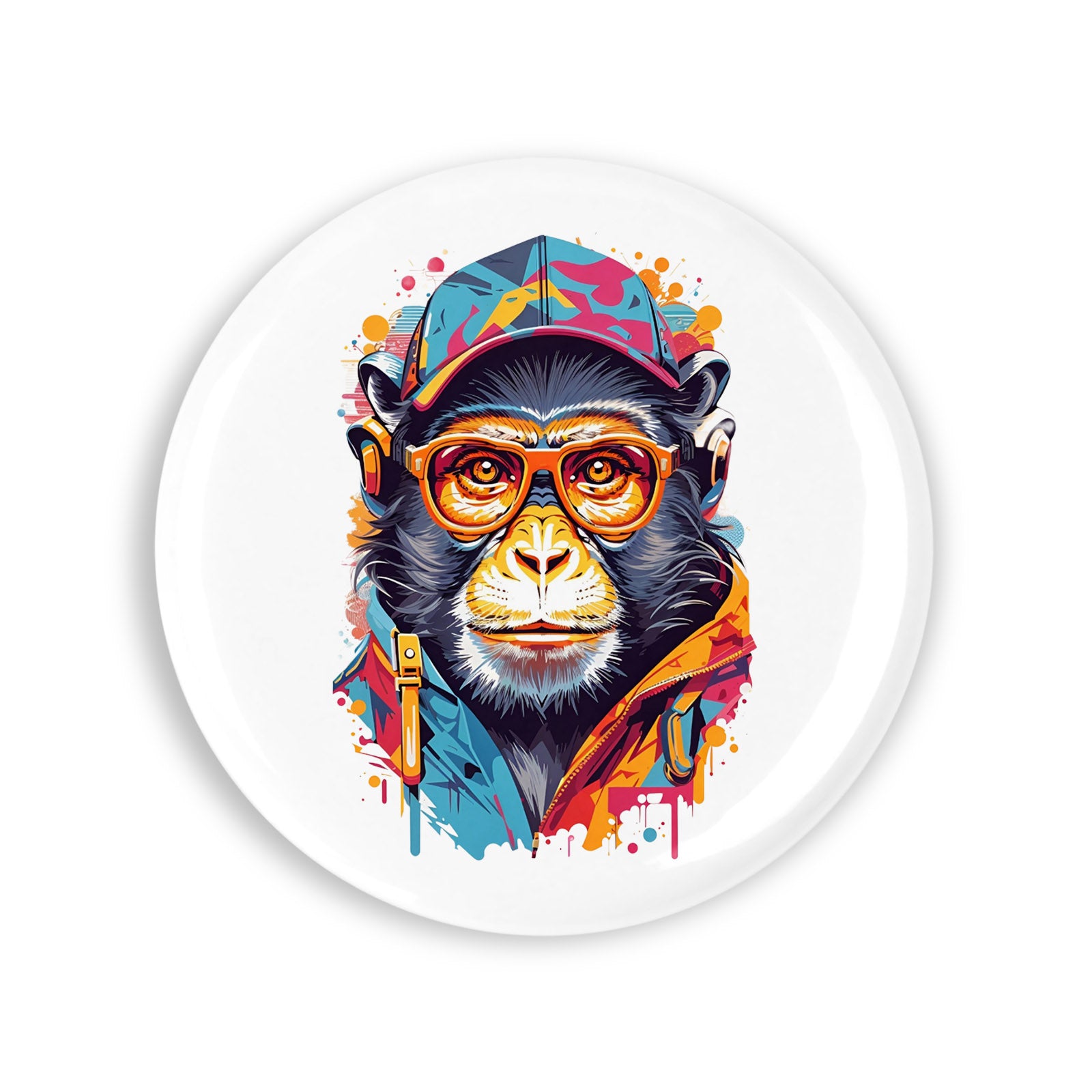 - Set 4 insigne, Cimpanzeul cu ochelari si sapca, NO6616, Metal, 44 mm, Multicolor