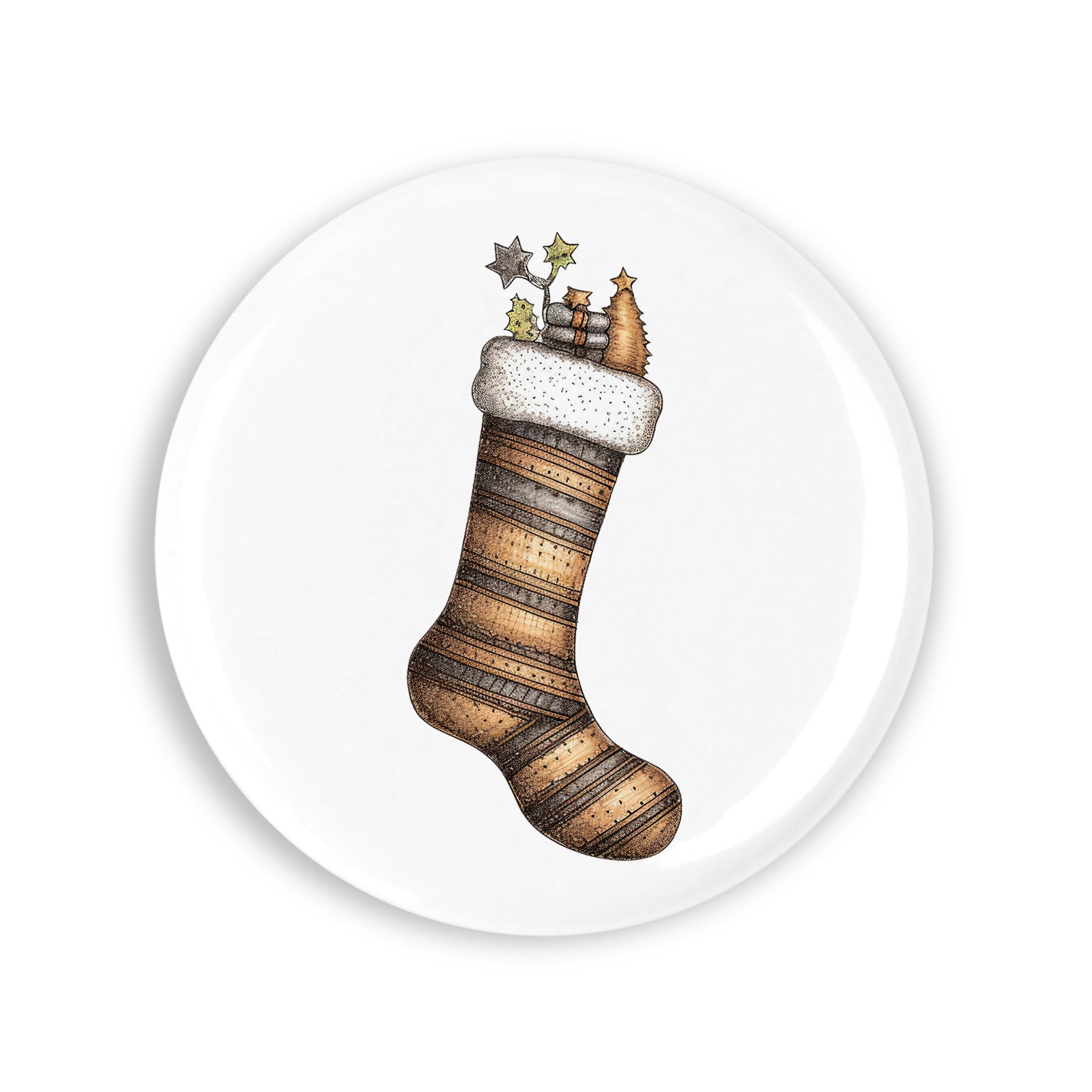 - Set 4 insigne, Ciorapul de craciun cu cadouri, NO335, Metal, 44 mm, Multicolor