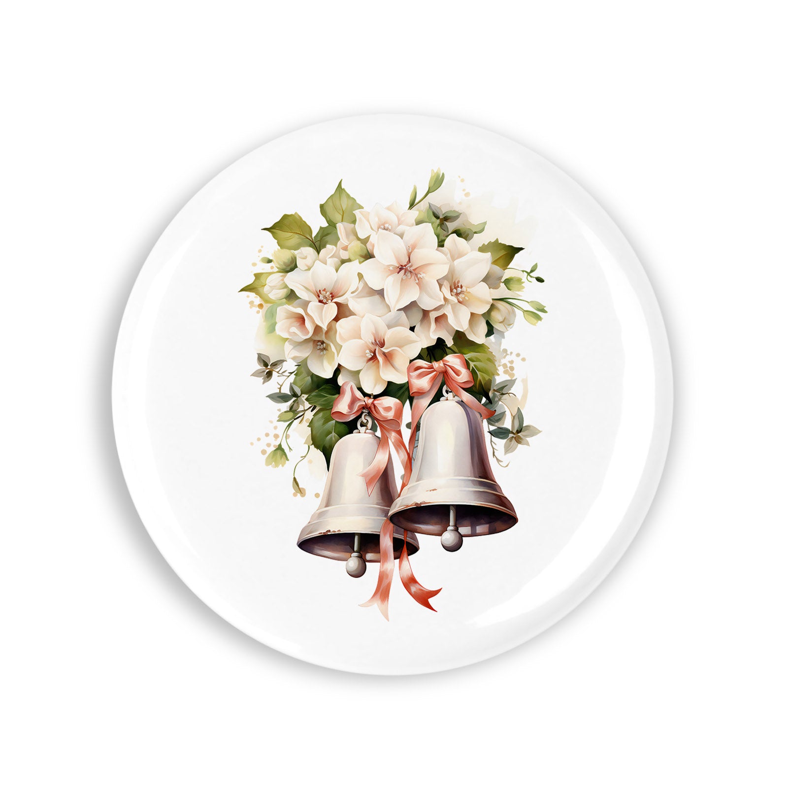 - Set 4 insigne, Clopotei de nunta cu flori, NO1742, Metal, 44 mm, Multicolor