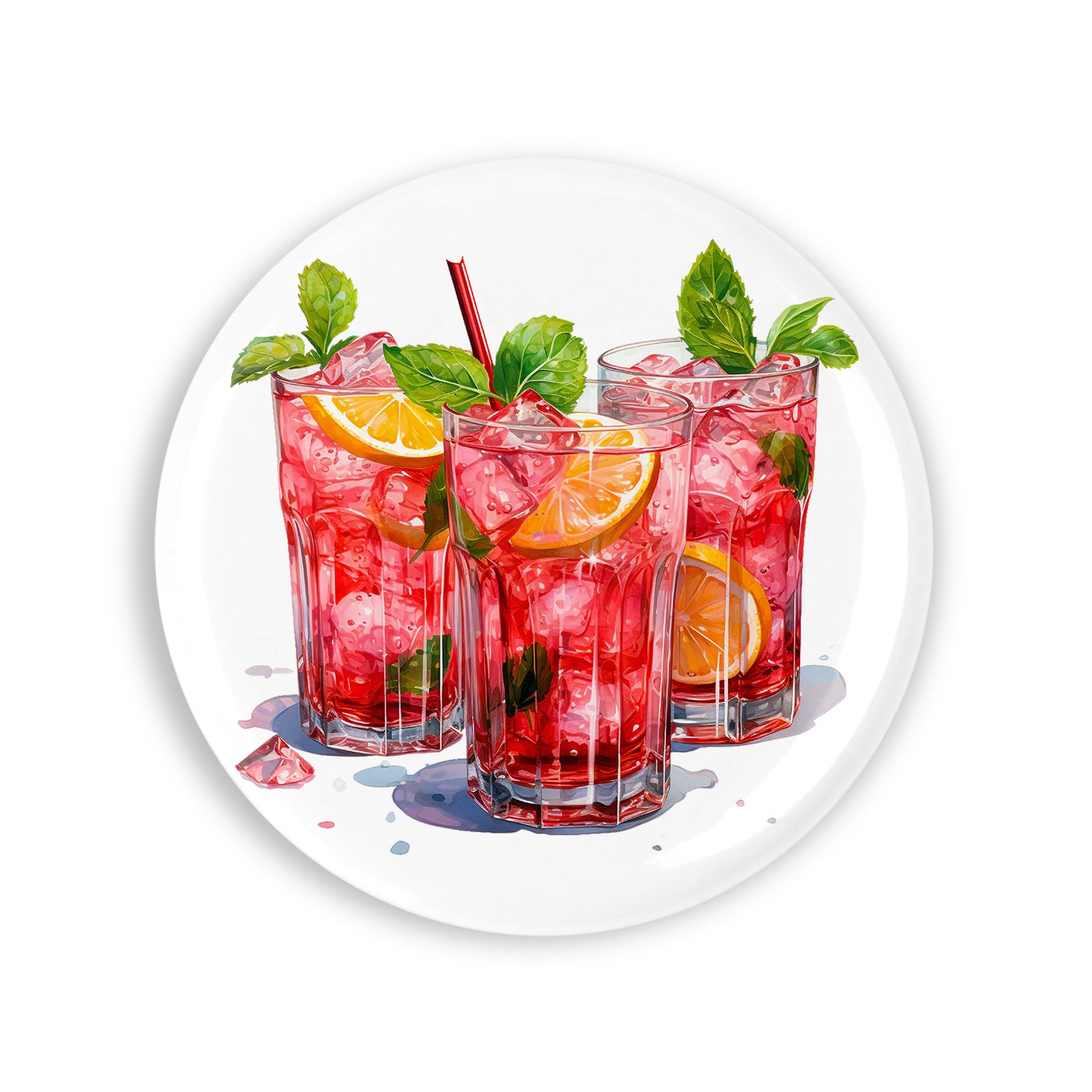 - Set 4 insigne, Cocktail de fructe cu portocale, NO540, Metal, 44 mm, Multicolor