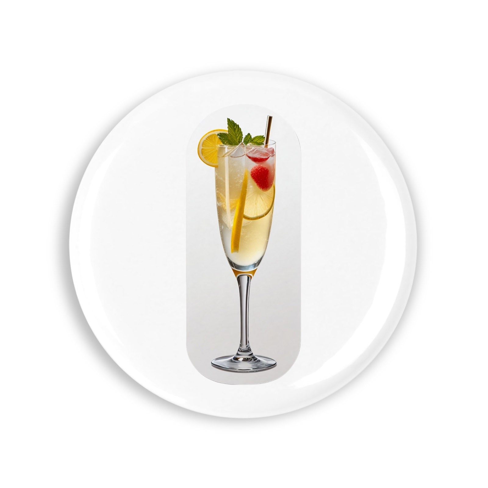 - Set 4 insigne, Cocktail frantuzesc cu capsune si menta, NO8199, Metal, 44 mm, Multicolor
