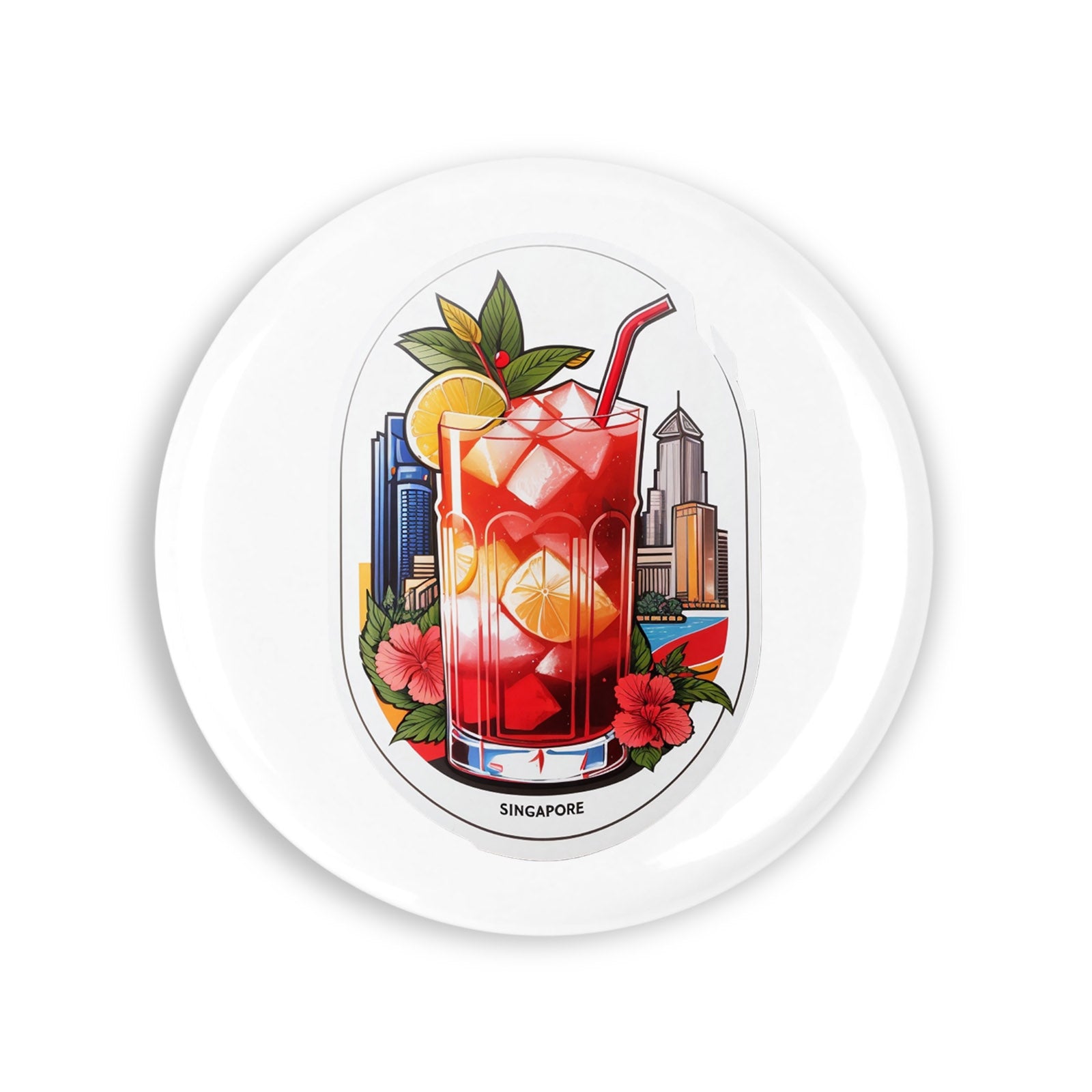 - Set 4 insigne, Cocktail Singapore sling cu gheata si lamaie, NO8897, Metal, 44 mm, Multicolor