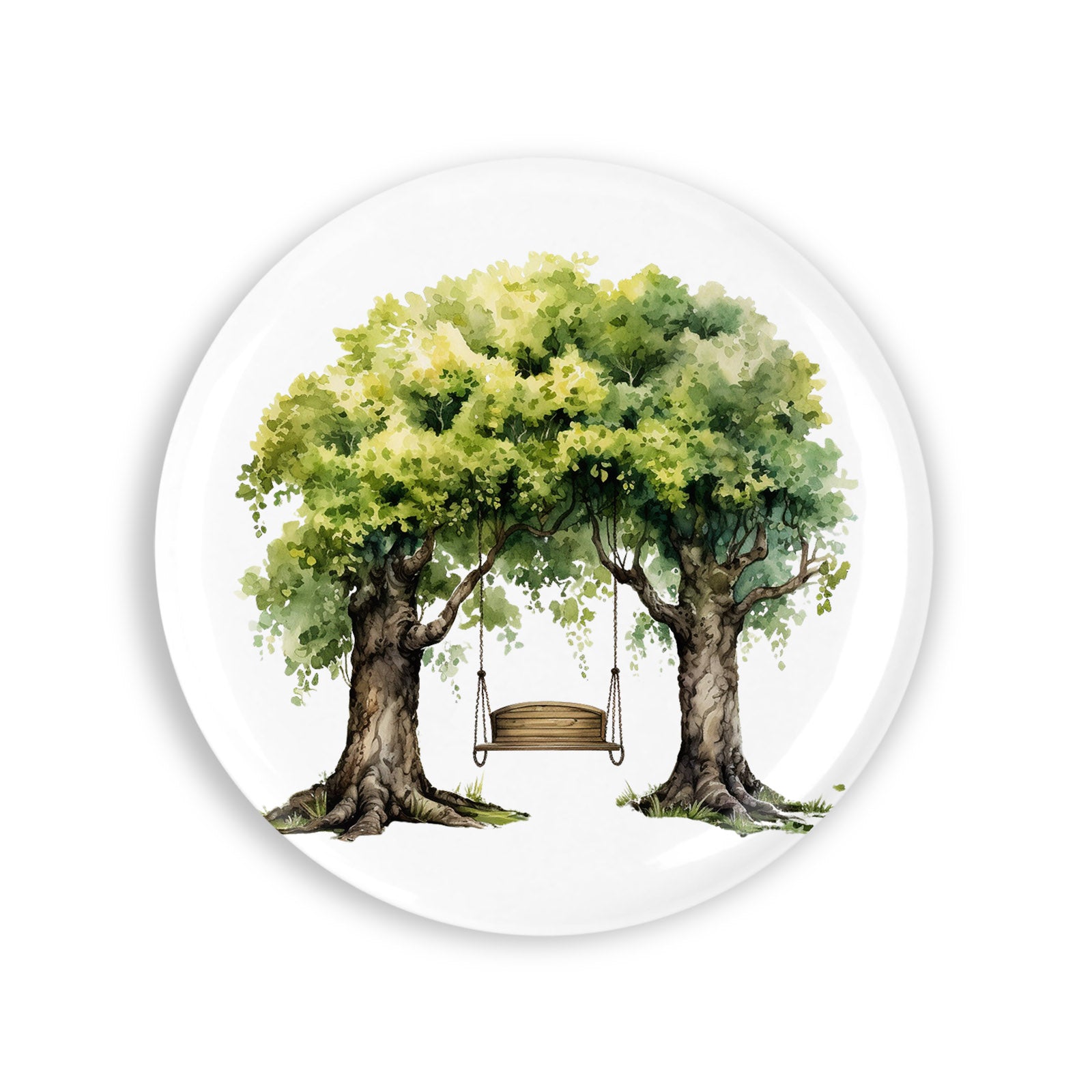 - Set 4 insigne, Copaci verzi in padure cu leagan, NO5202, Metal, 44 mm, Multicolor