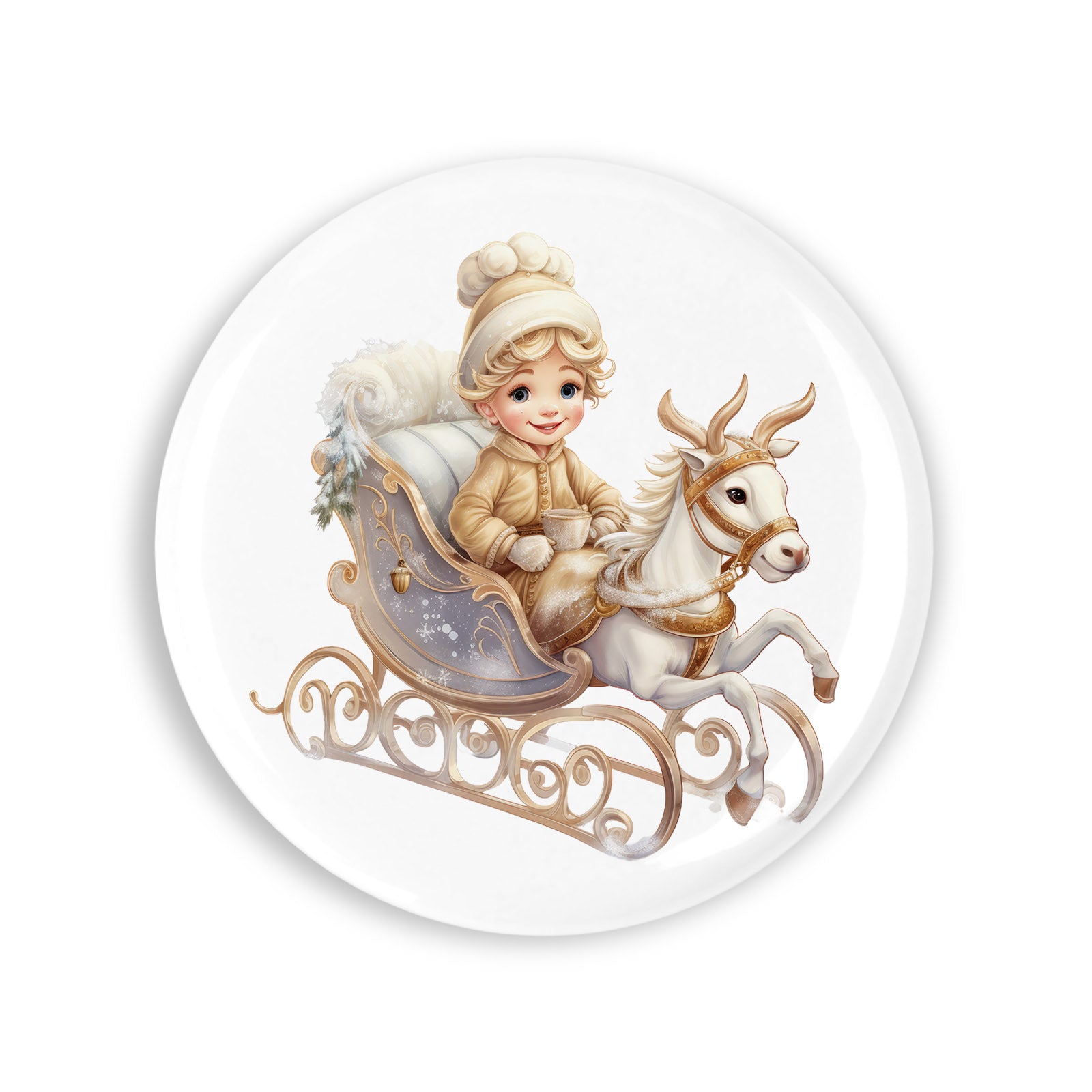 - Set 4 insigne, Copil in saniuta de craciun, NO2609, Metal, 44 mm, Multicolor