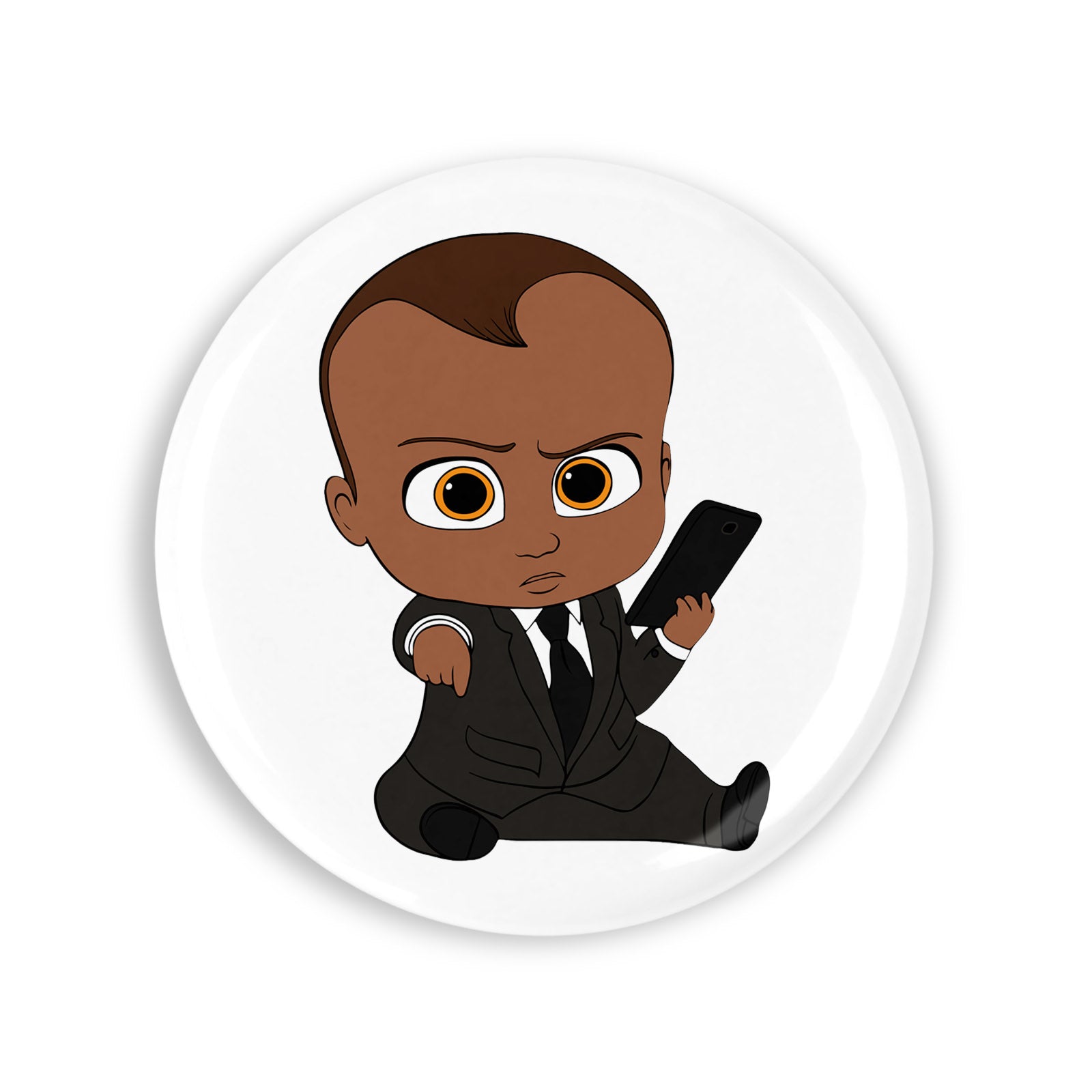 - Set 4 insigne, Copilul sef cu mobil, NO9724, Metal, 44 mm, Multicolor