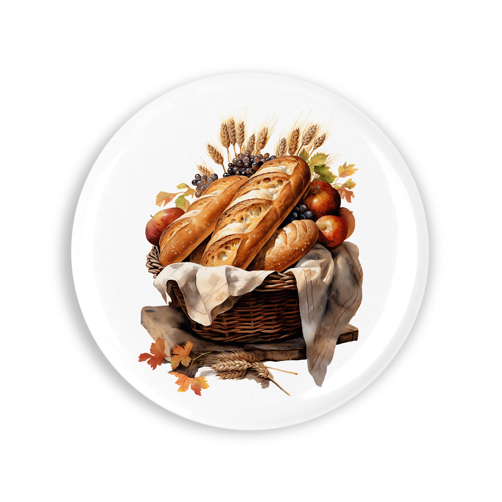 - Set 4 insigne, Cos de nuiele cu paine si fructe (1), NO1404, Metal, 44 mm, Multicolor