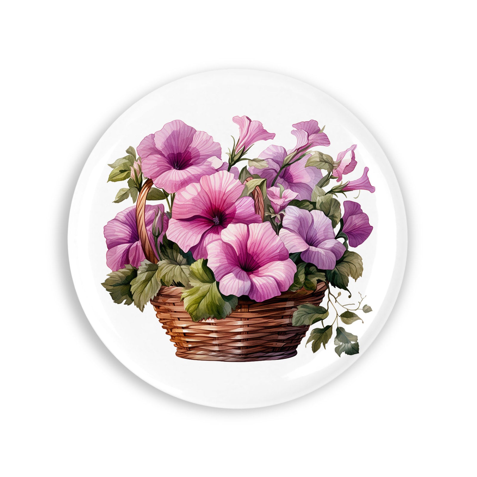 - Set 4 insigne, Cos de nuiele cu petunii roz, NO2788, Metal, 44 mm, Multicolor
